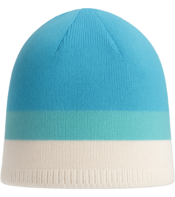 Lekka, dzianinowa czapka w połączeniu jasnoniebieskiego, turkusowego i białego. Wykonana z miękkiego, przyjemnego materiału, który zapewnia ciepło i komfort noszenia. Dzięki prostemu krojowi i elastycznemu ściągaczowi dobrze dopasowuje się do głowy. Doskonały wybór do uprawiania sportów zimowych i noszenia na co dzień.