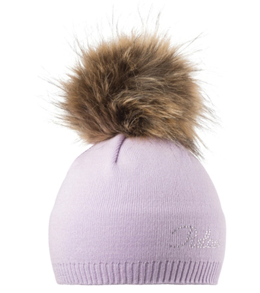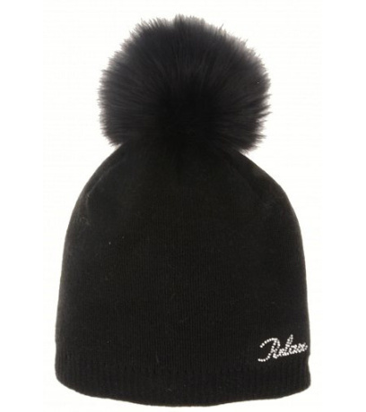 Damska zimowa czapka z pomponem i prostym wzorem z pięknymi błyszczącymi kryształkami na logo, z pomponem.