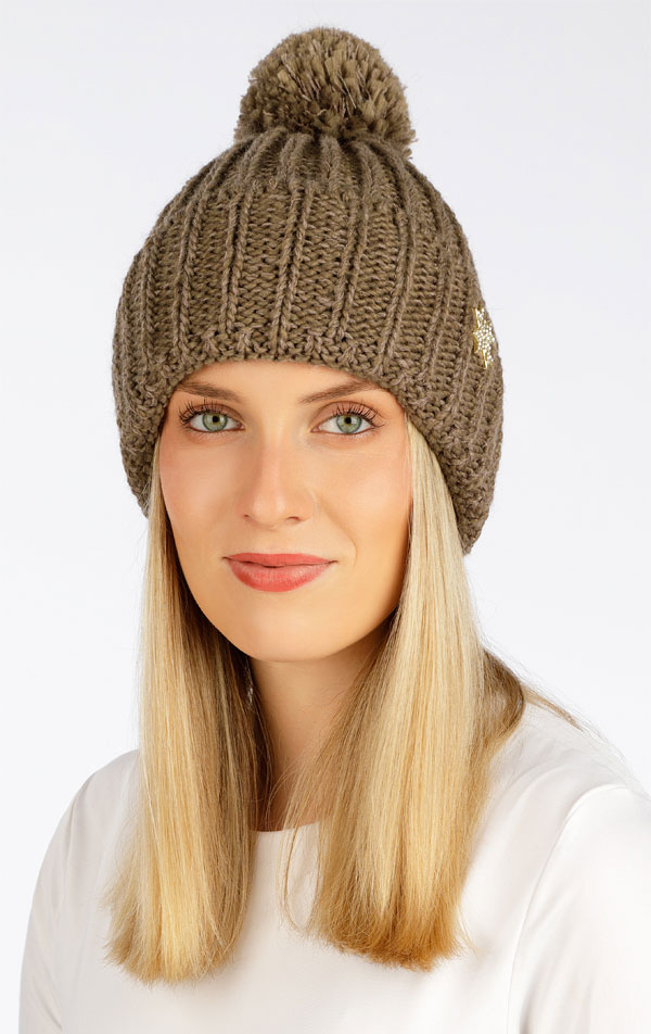 Dzianina. Podszewka polarowa wewnątrz. Pompon. Ozdobna aplikacja z kryształkami.