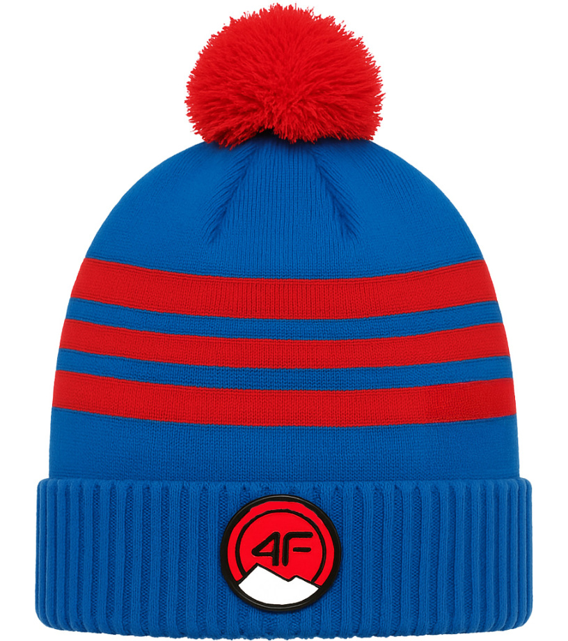 Dziecięca czapka zimowa 4F z pomponem łączy w sobie radosny design i funkcjonalność. Wykonana jest z miękkiego i ciepłego materiału, który zapewnia doskonałą ochronę przed zimnem. Dzięki rolowanemu brzegowi idealnie trzyma kształt i wygodnie leży na głowie. Kolorowe paski i kontrastowy pompon nadaje czapce stylowy wygląd, który uzupełnia okrągłe logo 4F z przodu. Idealna na zimowe szaleństwa, narty i do noszenia na co dzień.