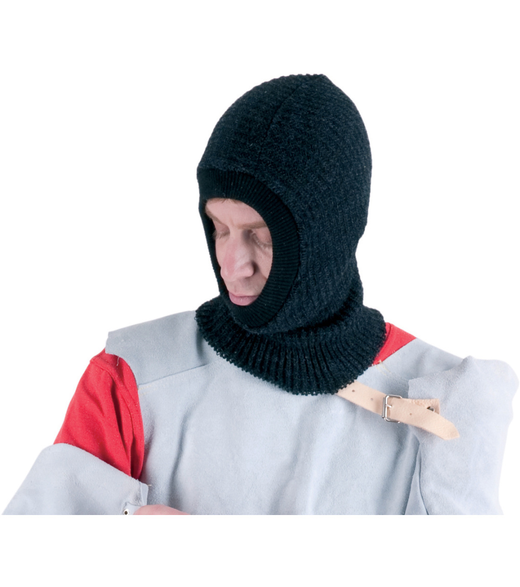 Elastyczna kominiarka z dzianiny z dziurką na twarzy.