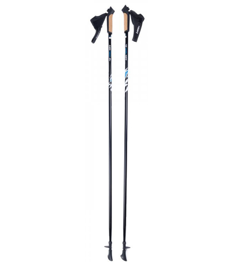 Kijki przeznaczone do wsparcia podczas chodzenia i nordic-walkingu. Stała długość kija gwarantuje 100% wsparcia i odbicia oraz niską wagę. Dzięki wysokiej jakości paskowi i uchwytowi kijki dokładnie trzymają się dłoni, co zwiększa zarówno bezpieczeństwo, komfort, jak i efektywność podczas Nordic Walking. Korkowa część rękojeści zapewnia większy komfort trzymania. Podczas chodzenia z kijami ćwiczone są mięśnie niemal całego ciała. Chodzenie to jeden z najzdrowszych ruchów, ponieważ angażuje większość mięśni ciała i w przeciwieństwie do biegania jest delikatny dla stawów kolanowych. Dodatkowo przy pomocy kijków prawidłowo trzyma się górną część ciała i ćwiczone są ramiona. Kijki wyposażone są w gumowe stopery zapewniające dobry kontakt kijka z podłożem. Na miękkim terenie ograniczniki można usunąć. Możliwość dokupienia nowych gumowych ograniczników.