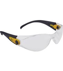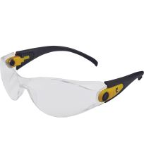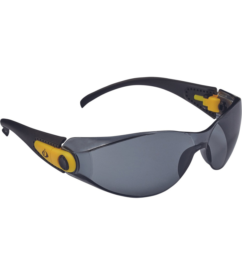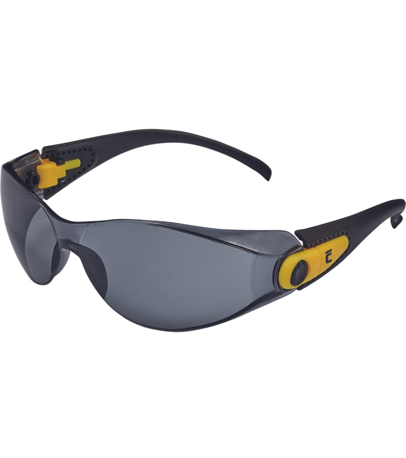 Okulary z szybkami poliwęglanowymi, regulowany kąt nachylenia i długość ramion, sportowy wygląd, szybki nieparujące i odporne na zarysowania, klasa F według normy EN 166 - ochrona przed odpryskami ciał stałych o niskiej energii uderzenia, klasa optyczna 1, szare szybki z filtrem UV według normy EN 172.