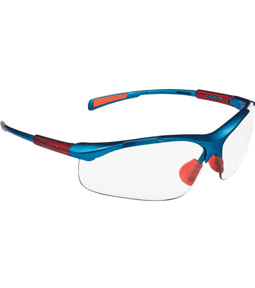 Okulary z szybkami poliwęglanowymi, regulowany kąt nachylenia i długość ramion, sportowy wygląd, szybki nieparujące i odporne na zarysowania, klasa F według normy EN 166 - ochrona przed odpryskami ciał stałych o niskiej energii uderzenia, klasa optyczna 1, żółte szybki z filtrem UV według normy EN 170, przyciemnione szybki z ochronnym przeciwsłonecznym filtrem według normy EN 172.