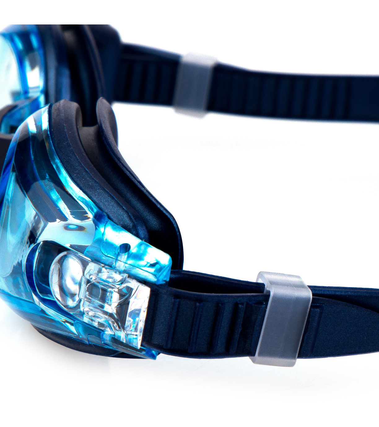 Okulary wyposażone są w podwójny silikonowy pasek zapewniający optymalne rozłożenie napięcia. Dzięki wygodnej i wyjątkowo prostej regulacji paska i noska okulary można łatwo dopasować do obwodu głowy.
