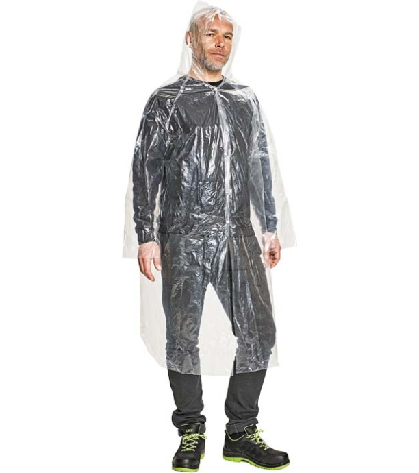 Lekki płaszcz przeciwdeszczowy do wielokrotnego użytku. Zapięcie z przodu na plastikowe zatrzaski. Swobodny krój do natychmiastowego użycia na klasycznej odzieży roboczej. Wszystkie szwy łączące są uszczelnione. Opakowanie transportowe.