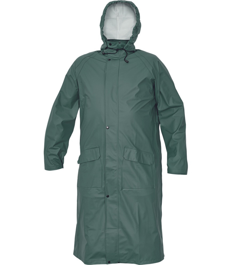Wodoodporny i wiatroszczelny, przedłużany płaszcz z kapturem w kołnierzu. Długość 120 cm. Obwód kaptura można ściągnąć na sznureczkiem. Dwie przednie kieszenie zakryte klapkami. Dolny brzeg rękawów można regulować za pomocą zatrzasku.