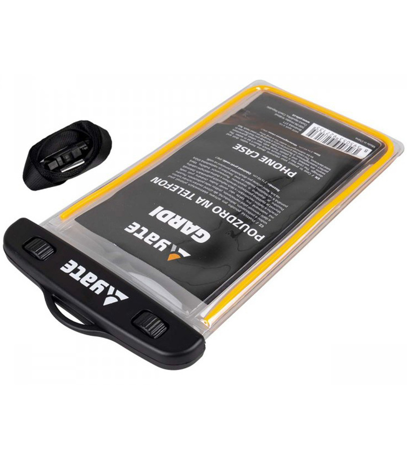 Praktyczne etui chroniące urządzenia elektroniczne przed wodą i uszkodzeniami. Nowe proste, ale skuteczne zamknięcie chroni telefon i inne cenne przedmioty przed zamoczeniem, zgubieniem lub uszkodzeniem. Etui ma zgrzewane szwy, dzięki czemu znajdujące się w nim rzeczy będą chronione przed wodą, kurzem i innymi zanieczyszczeniami nawet w najgorszych warunkach. Doskonałą szczelność zapewnia plastikowa ramka z dwoma obrotowymi zamknięciami. Uzupełnieniem etui jest pomarańczowa fluorescencyjna rurka, która pomaga szybciej odnaleźć etui w ciemności. W zestawie regulowany sznurek na szyję. Nie jest przeznaczony do długotrwałego zanurzenia w wodzie.