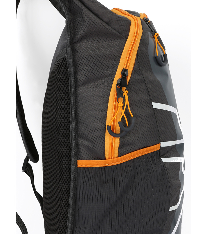 Plecak kolarski Loap TRAIL 22 jest przeznaczony na dłuższe wycieczki rowerowe lub każdą wyprawę, w której przyda się więcej miejsca w plecaku. To świetny wybór np. na regularne jazdy do pracy rowerem – niezawodnie zapakujesz ubrania do przebrania i inne potrzebne rzeczy w pojemności 22 litrów. Plecak wyposażono w system nośny AFS ("Air Flow System"), który zapewnia niezbędne wzmocnienie pleców przy zachowaniu odpowiedniej cyrkulacji powietrza i wentylacji. Anatomicznie ukształtowane szelki pomagają w wygodnym noszeniu, a pasek na klatce piersiowej zapobiega spadaniu szelek z ramion. Plecak ma jedną komorę główną uzupełnioną jedną kieszenią wewnętrzną i 4 kieszeniami zewnętrznymi, w tym dwie siatkowe, dwie zapinane na suwak. Wysokiej jakości elementy odblaskowe zapewniają widoczność nawet w ciemności. Odporność na rozdarcia zapewnia mocny i wytrzymały materiał Ripstop.