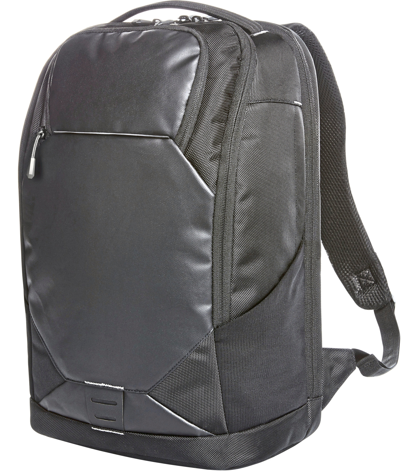 Starannie wykonany biznesowy plecak z odblaskowym wykończeniem i możliwością zamontowania rowerowego oświetlenia LED