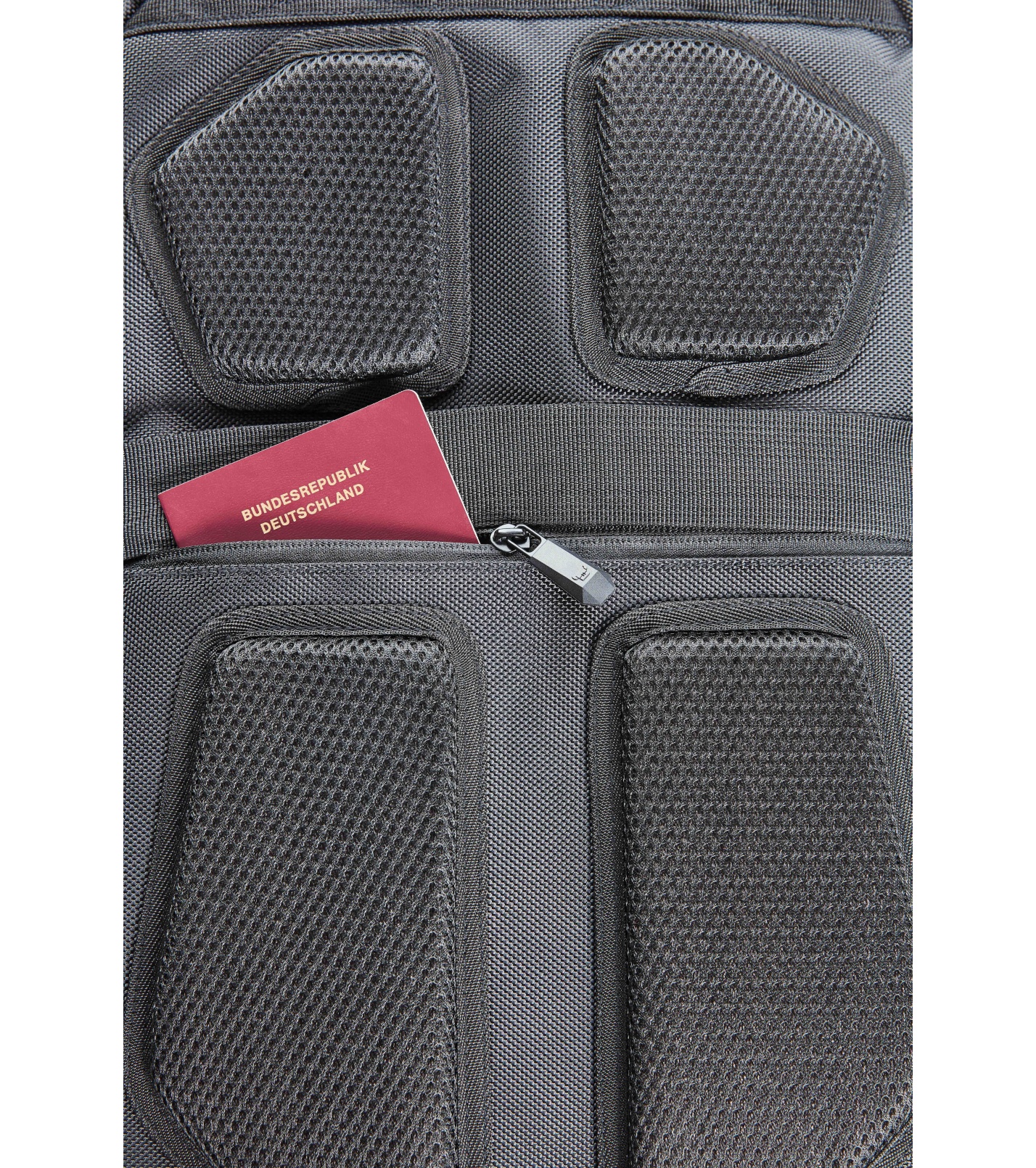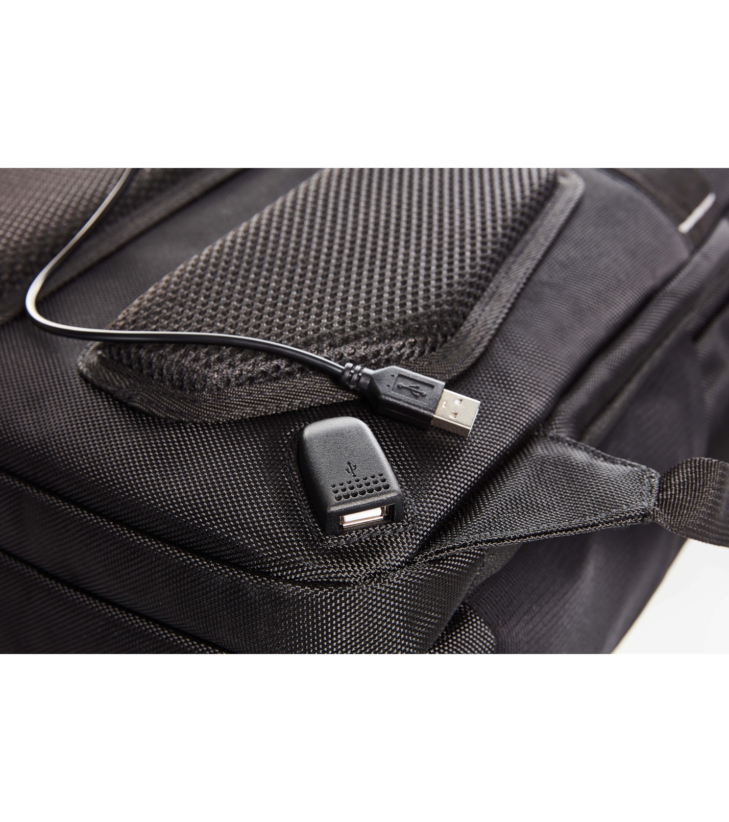 Tylne mocowanie na uchwyt walizki, komora z krytym zamkiem, port USB ze zintegrowanym kablem podłączeniowym