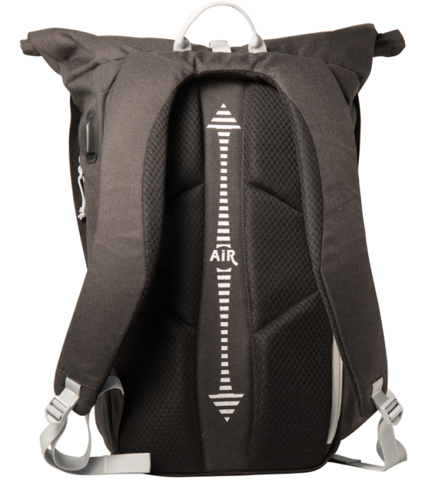 Praktyczny nowoczesny plecak wykonany z wodoodpornego materiału do codziennego użytku w mieście i na wycieczki. Zapięcie typu roll-up, które dodatkowo uzupełnione jest listwą magnetyczną. Pozwala dostosować rozmiar w zależności od ilości rzeczy w środku. System ten chroni przed kradzieżą i zamoknięciem w deszczu. Wewnątrz znajduje się osobna kieszeń na tablet lub laptop, która ma dostęp od góry, a także z boku za pomocą suwaka. Z drugiej strony jest wyjście słuchawkowe. Na zewnątrz znajdują się dwie kieszenie zapinane na zamek, a wewnątrz jedna kieszeń na dokumenty. Plecak wyposażony jest w ergonomicznie ukształtowane szelki oraz wzmocniony system pleców, dzięki czemu jest bardzo wygodny w noszeniu.