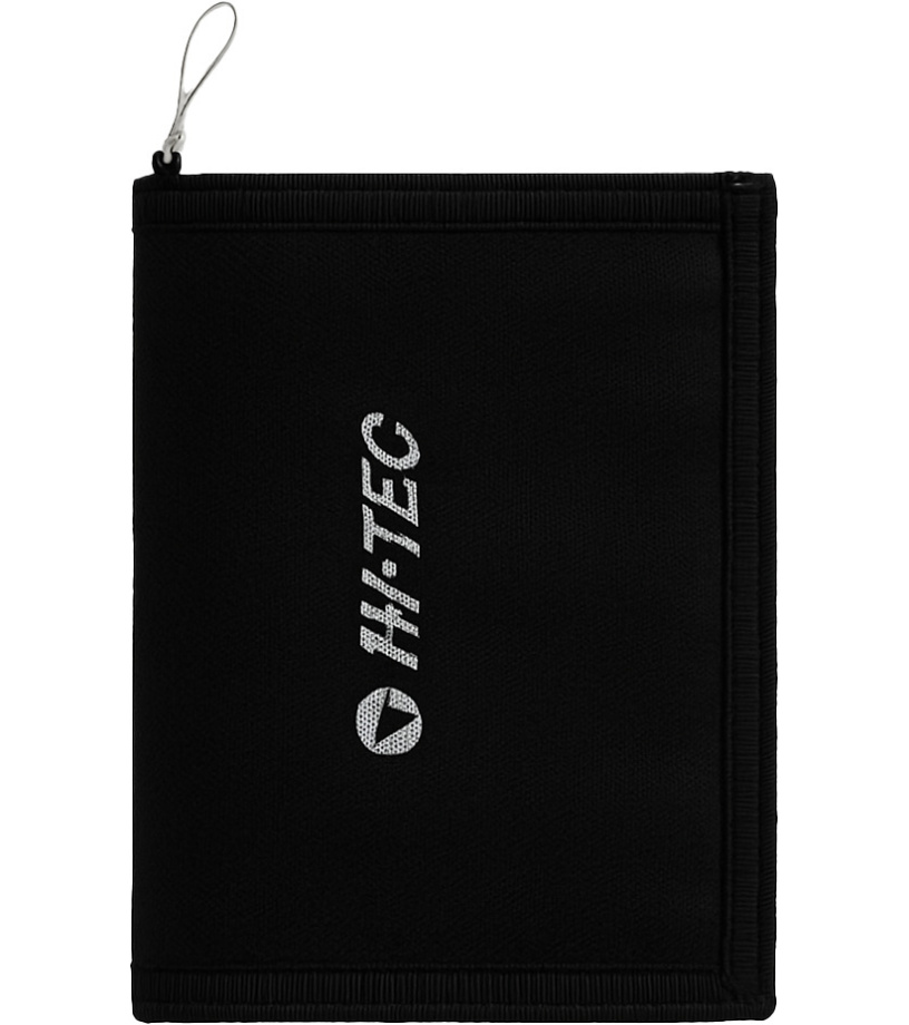 Praktyczny portfel Hi-Tec w eleganckiej czerni. Wykonany z wytrzymałego materiału, odpowiedni do codziennego użytku i uprawiania sportu. Oferuje przejrzysty układ przegródek na banknoty, karty i monety oraz zapięcie na rzep zapewniające bezpieczne zamknięcie.