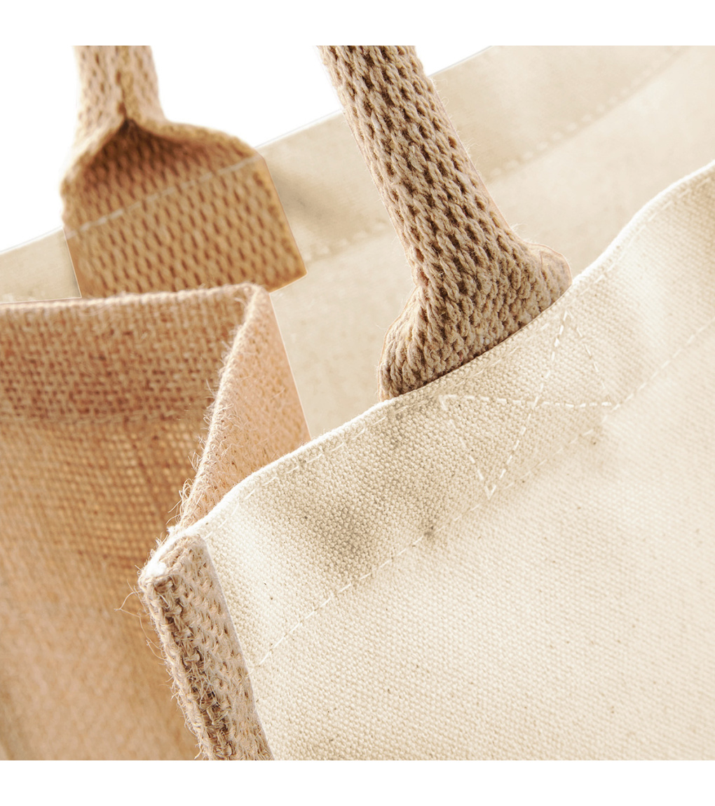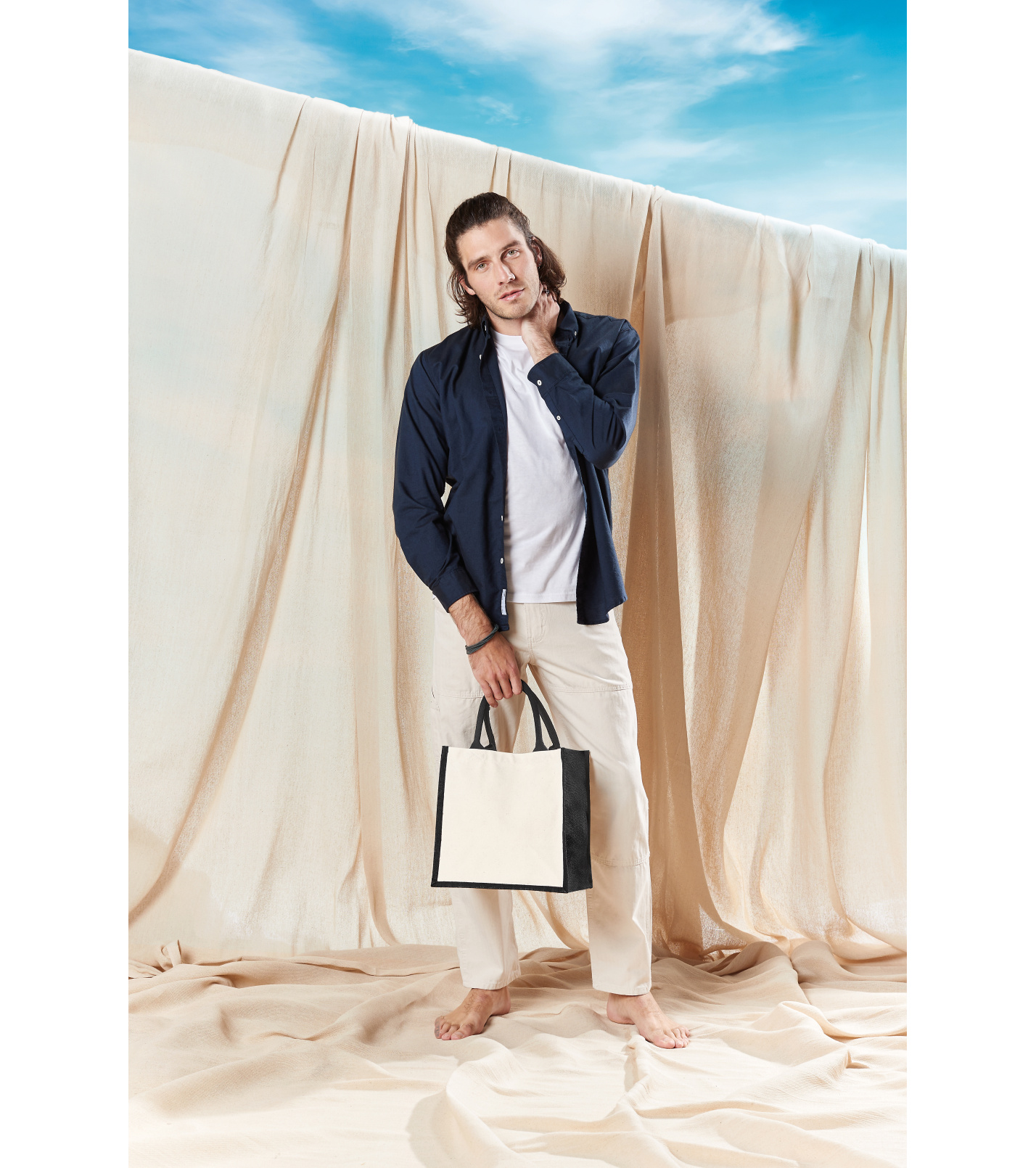 Z przodu i z tyłu bawełna płóciennaBoki i uchwyty z juty laminowanej