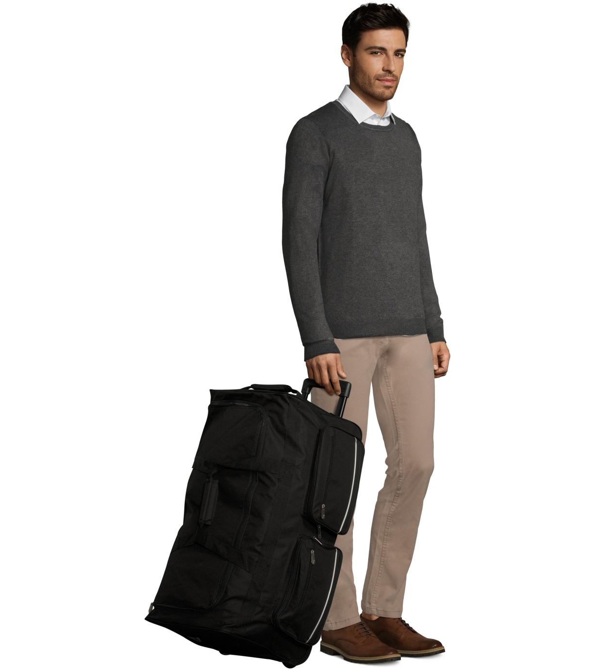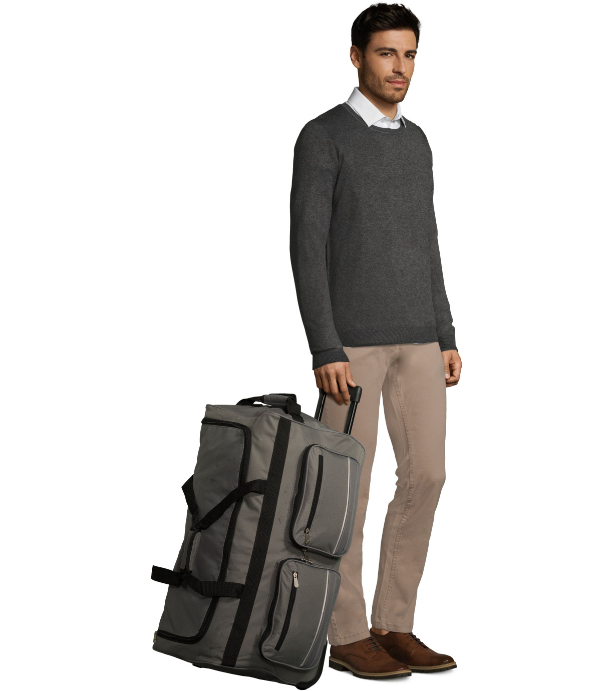 Torba podróżna z cichymi kółkami, która ułatwia podróżowanie. Uchwyt można ukryć. Torba posiada regulowany i odpinany nylonowy pasek na ramię oraz wyściełane uchwyty boczne. Duża kieszeń centralna zamykana jest na zamek błyskawiczny, podobnie jak podwójne kieszenie z przodu. Torba posiada trwałe, w pełni wyściełane dno oraz zewnętrzne nitowane szyny na spodzie torby.