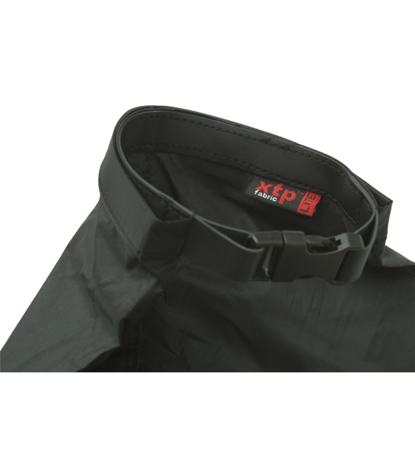 Worek ma klejone szwy i wodoodporne, rolowane zapięcie. Materiał XTP LITE jest wodoodporny, lekki i wytrzymały. Kształt worka pozwala na maksymalne wykorzystanie przestrzeni. Aby worek był wodoodporny, należy co najmniej 3 razy zwinąć zamknięcie i zapiąć sprzączkę.