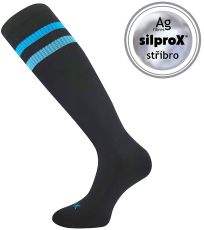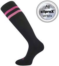 Damskie sportowe podkolanówki o specjalnej konstrukcji zapobiegającej przesuwaniu się w bucie, wyściełane strefy chronią nogę przed odciskami i pęcherzami, luźny, nie uciskający brzeg, antybakteryjna ochrona jonami srebra w materiale silproX