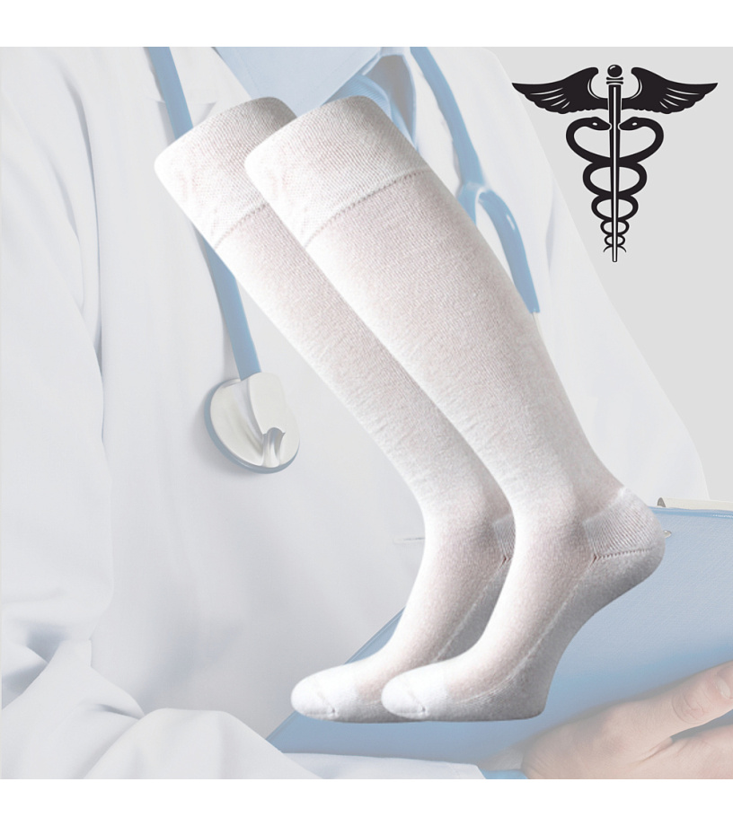 Gładkie podkolanówki unisex przeznaczone dla medyków, frotte na stopie, cienka dzianina, wyższy specjalny ściągacz.