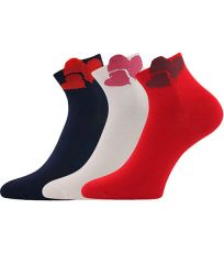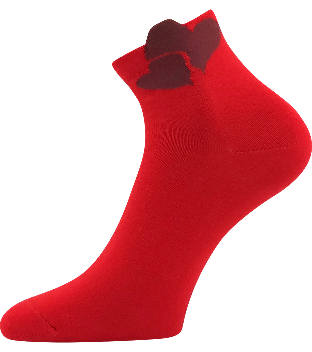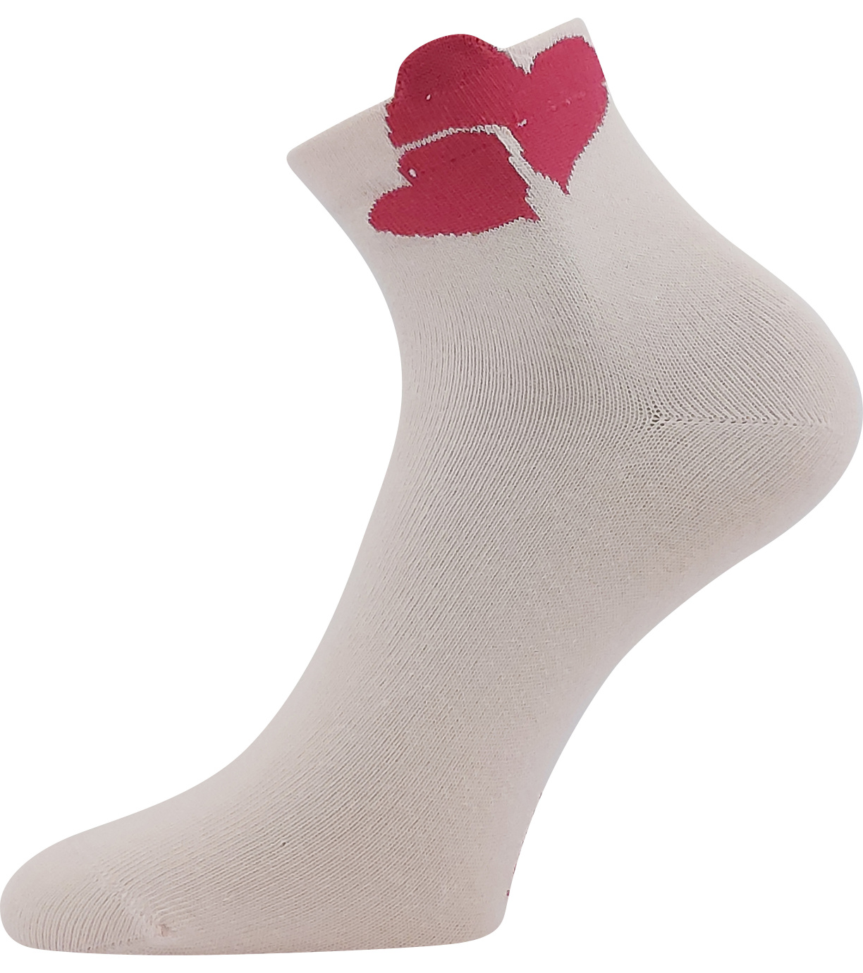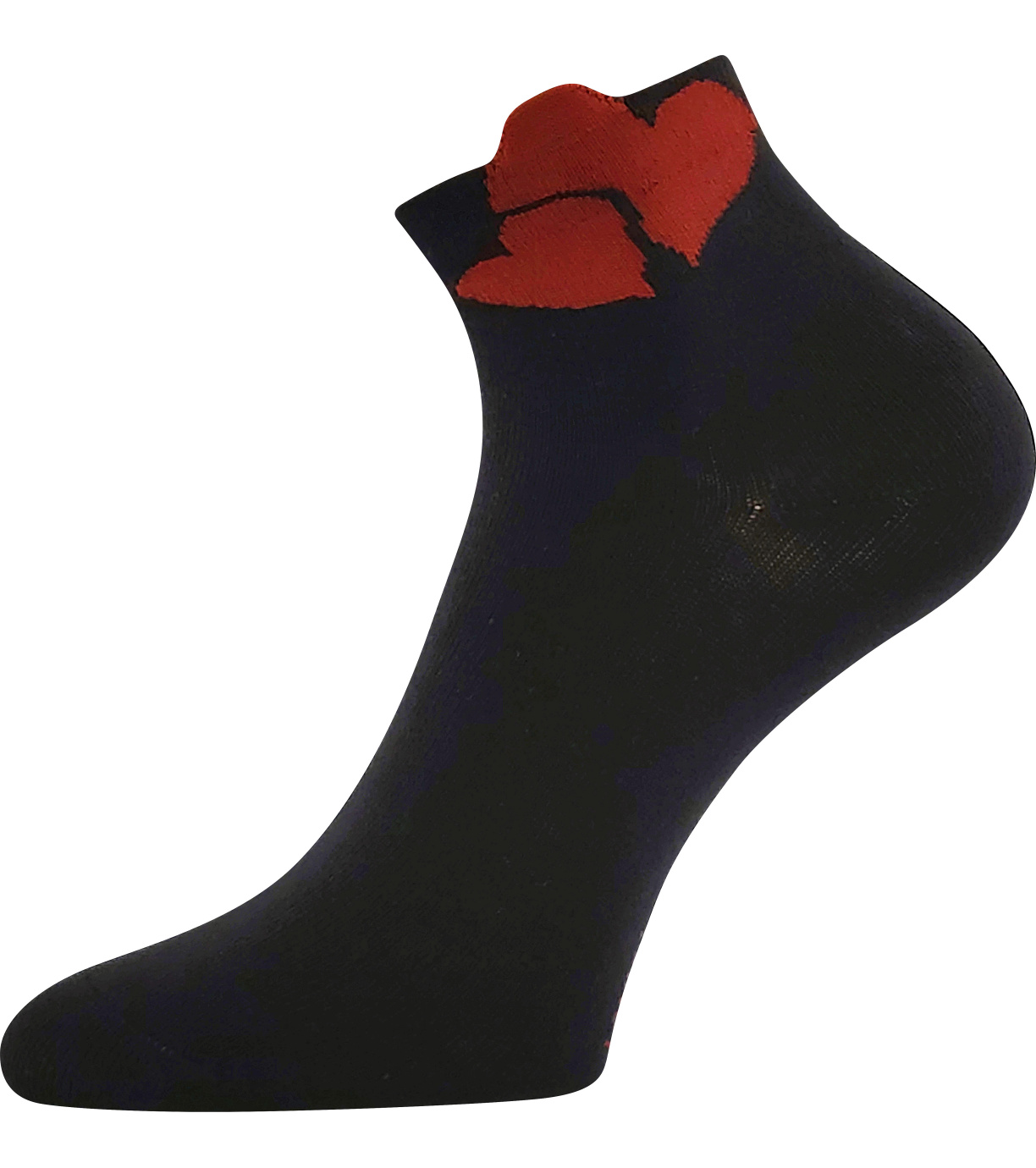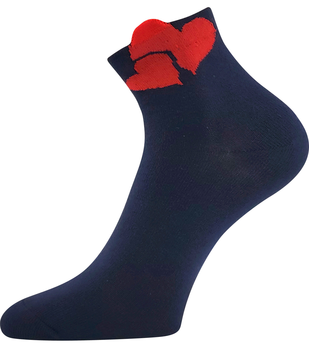 Damskie skarpetki Lonka ESRDCANA to wysokiej jakości skarpetki o średniej wysokości za kostkę. Kolorowe miksy cienkich skarpetek to idealne uzupełnienie damskiej garderoby. Modne skarpetki są bardzo miękkie i wygodne w noszeniu dzięki bawełnianej dzianinie z dodatkiem elastanu. Wysokiej jakości czesana przędza bawełniana dobrze odprowadza wilgoć, jest przyjemna dla skóry nawet latem i idealnie dopasowuje się do stopy. Szew łańcuszkowy nie uciska palców i nie powoduje powstawania odcisków ani pęcherzy. Skarpetki mają również luźny, nieuciskający brzeg, ozdobiony motywem serca.
