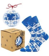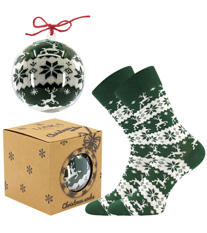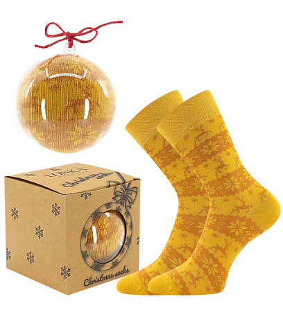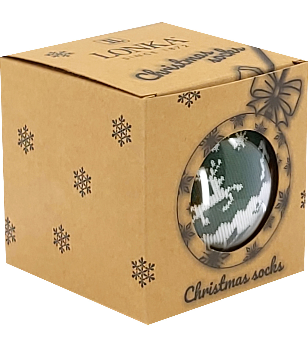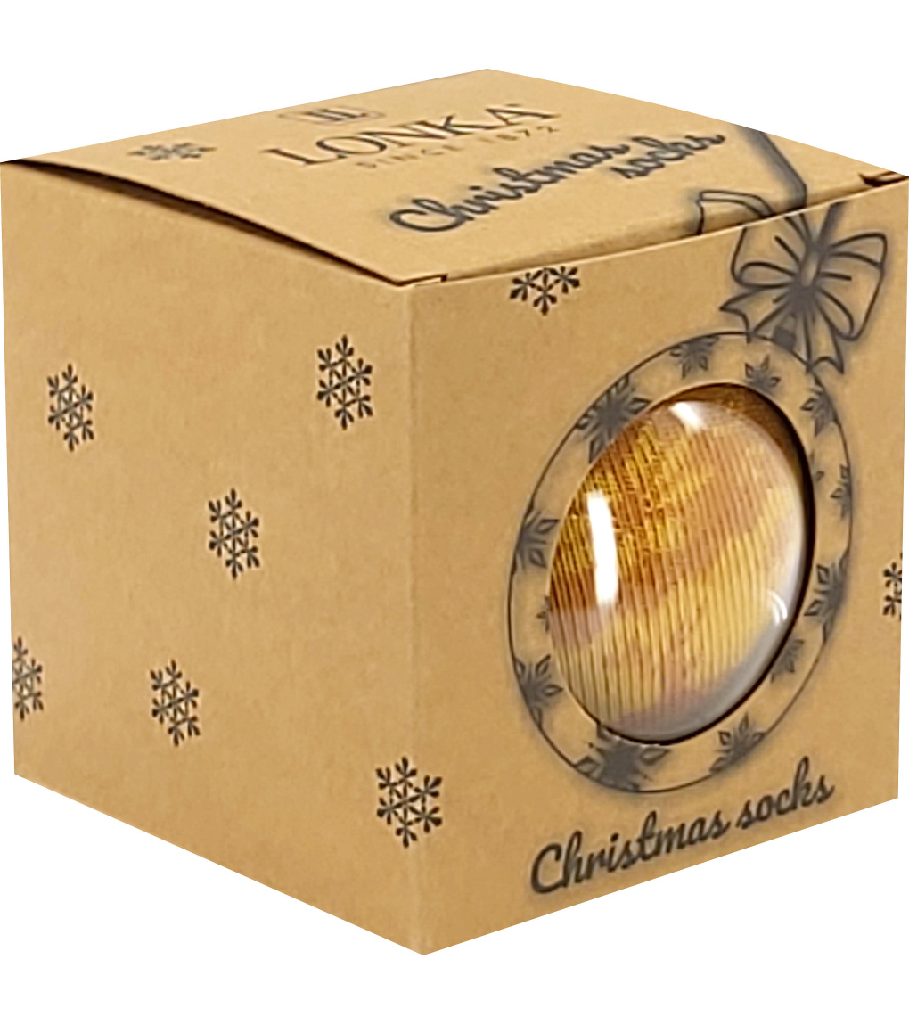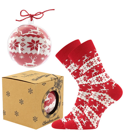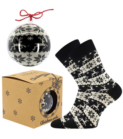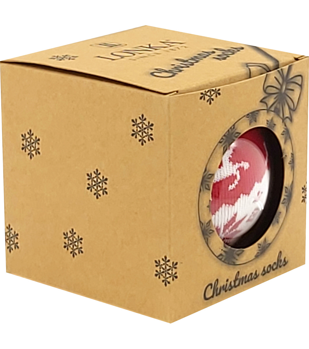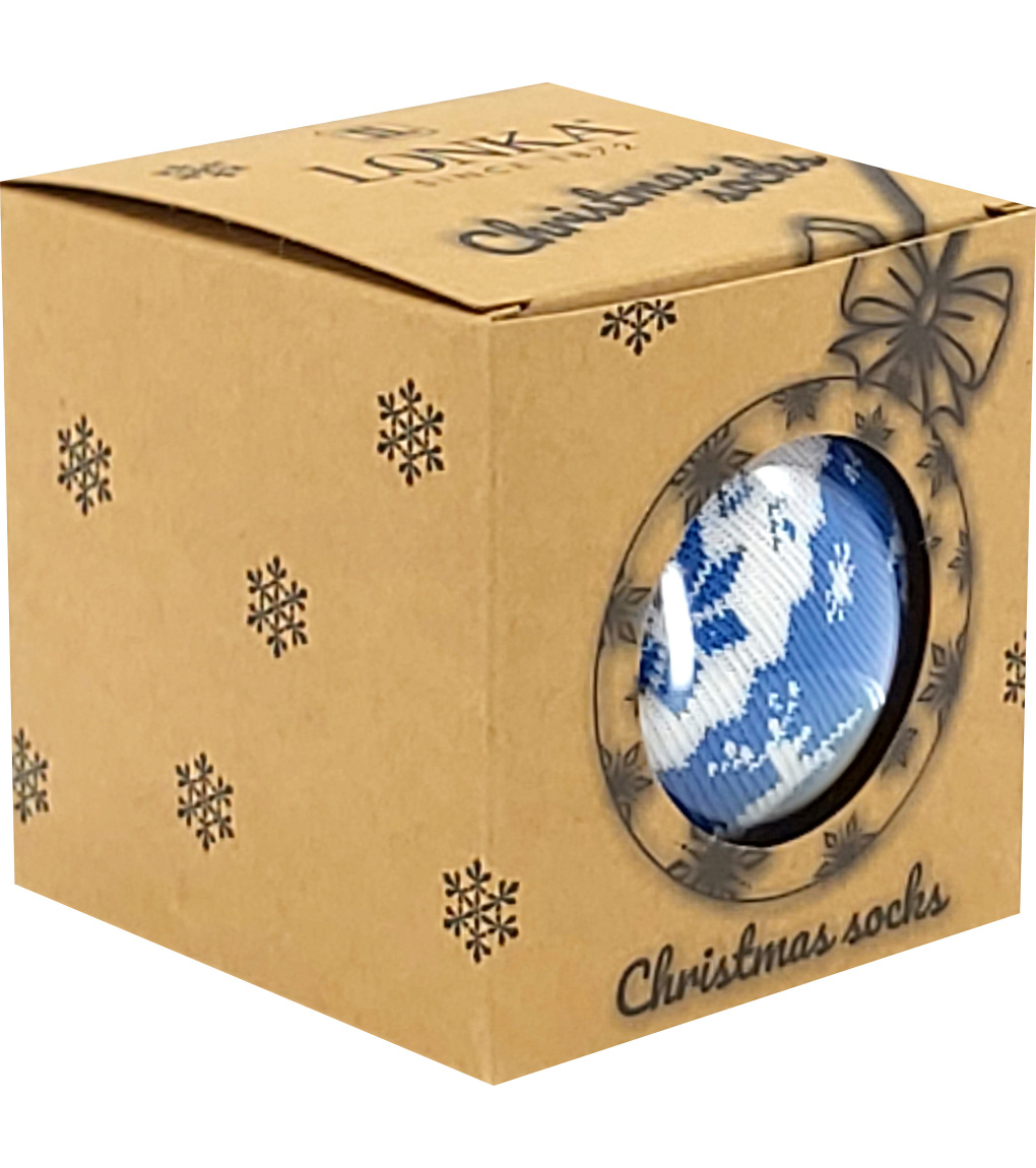 Skarpetki dziecięce, damskie i męskie ze świątecznym motywem, zapakowane jak ozdoba świąteczna, z miękkim i nieuciskającym ściągaczem pique, oryginalny prezent dla każdego.