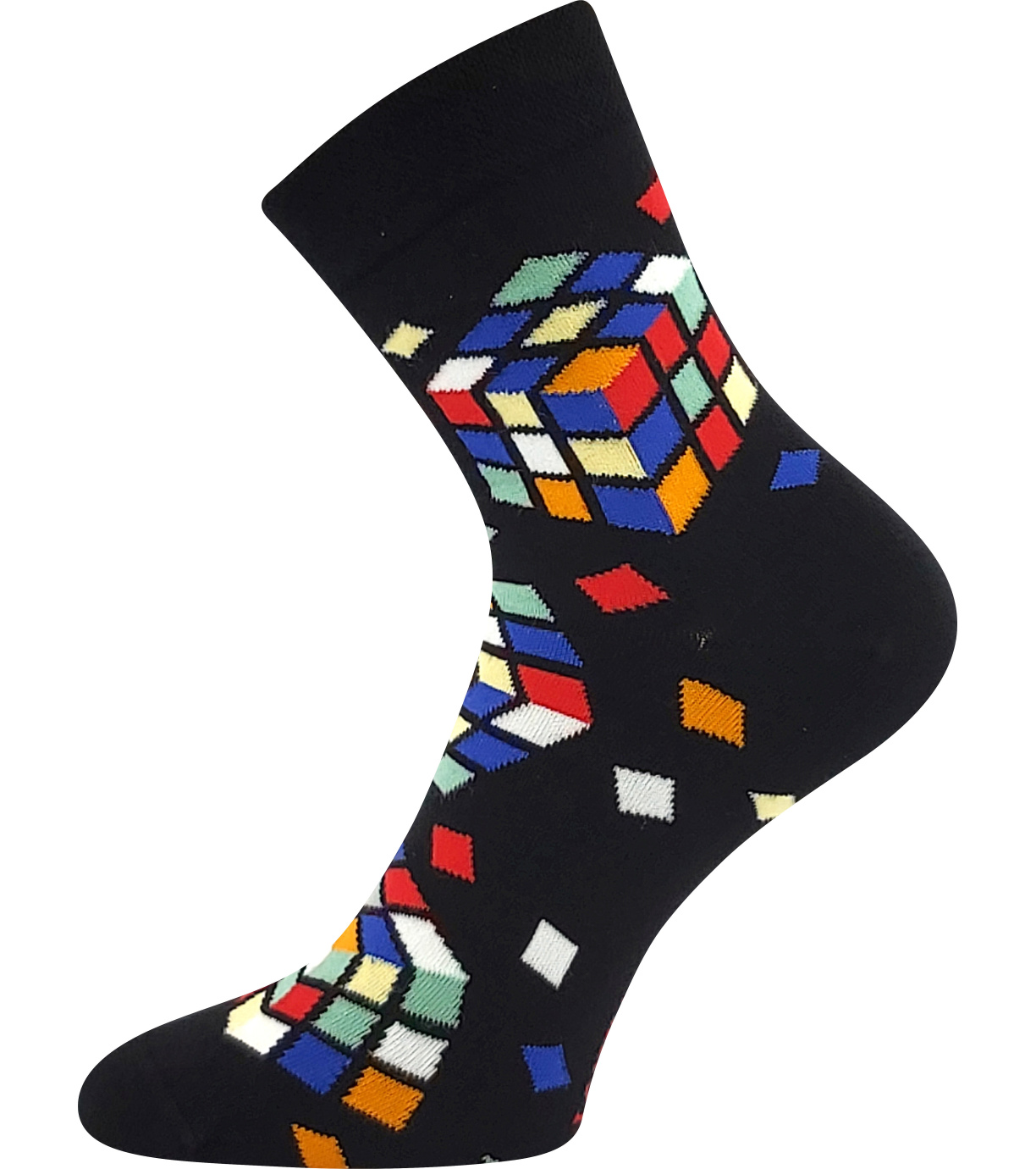 Skarpetki Lonka® DEVIVE to modne, klasyczne skarpetki najwyższej jakości. Dzianina jest dziergana na maszynach 200-igłowych, jest bardzo cienka i gładka, dzięki czemu każdy szczegół wzoru jest wyraźny. Skarpetki mają palce wykończone płaskim ściegiem łańcuszkowym, którego w ogóle nie czujesz. Skarpetki mają także luźny, nieuciskający ściągacz. Wysokiej jakości przędza bawełniana czesana z domieszką elastanu dobrze odprowadza wilgoć, jest przyjemna dla skóry i idealnie dopasowuje się do stopy. Crazy skarpetki garniturowe nie tylko dla mężczyzn ożywią Twój strój, nieważne czy masz na sobie garnitur czy dżinsy, będziesz się w nich czuł świetnie przez cały dzień.