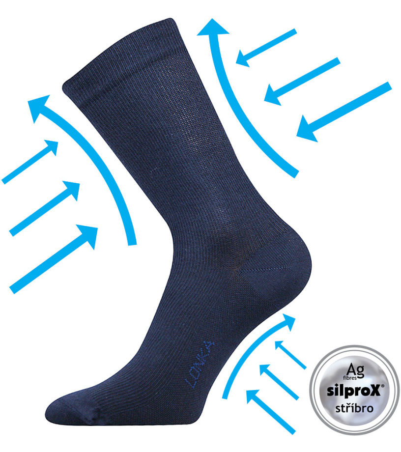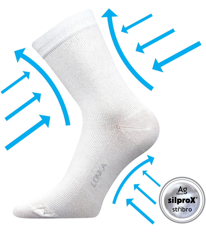 Skarpety wykonane są z materiału zawierającego jony srebra. Zapobiegają powstawaniu nieprzyjemnych zapachów i pleśni.