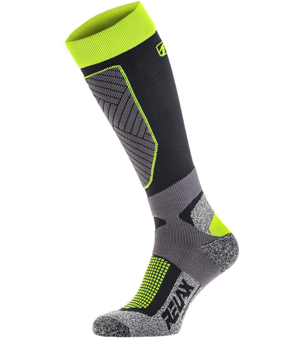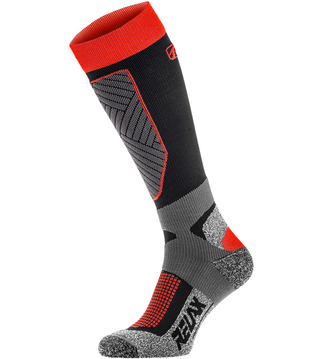 Skarpety narciarskie Relax COMPRESS dla wymagających narciarzy z lekką kompresją, która dzięki swoim właściwościom zwiększa wydajność, poprawia ukrwienie w mięśniach, a tym samym przyspiesza regenerację. Wzmocnienie piszczeli G-FORCE zapewnia doskonałe przenoszenie siły bezpośrednio do buta, zwiększając w ten sposób kontrolę sportowca nad nartami. Działanie bakteriostatyczne MERYL® SKINLIFE zapobiega namnażaniu się bakterii, a tym samym powstawaniu nieprzyjemnych zapachów, wspiera naturalną równowagę PH skóry.