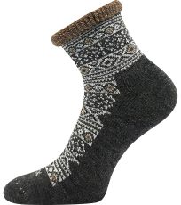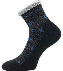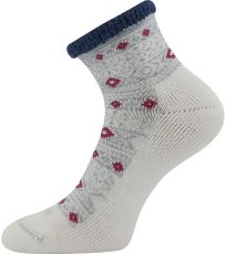 Damskie wełniane skarpety zimowe VoXX® ALESUND to grube skarpety z frotte wewnątrz, zapewniające maksymalny komfort termiczny nawet w bardzo chłodne dni. Krótsze skarpety mają luźny i wygodny, luźny brzeg, który jest ozdobnie podwinięty. Maksymalny komfort termiczny zapewnia zawartość wełny. Skarpety są przeznaczone do zimowych aktywności na świeżym powietrzu i do leniuchowania w domu. W klasie temperaturowej C można ich używać w temperaturach od -20°C do +5°C.