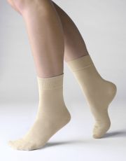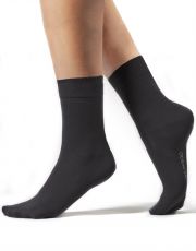 Skarpety o klasycznej wysokości nadają się na chłodniejsze pory roku lub do spodni wizytowych. Skarpetki są jednokolorowe, mają szerszą elastyczną lamówkę w górnej części, a na stopie są oznaczone rozmiarem.