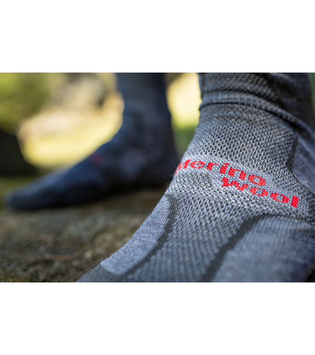 Unisex wytrzymałe i funkcjonalne skarpety, idealne na trekking i wędrówki, miękki ściągacz nie uciska części łydkowej, dzianina frotte i wzmocniona wyściełana stopa gwarantują komfort noszenia i maksymalną wytrzymałość skarpet na zużycie, zastosowane materiały wełna merino i silproX® z jonami srebra gwarantują ochrona antybakteryjna.