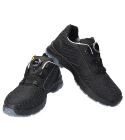 Unisexowe półbuty, obuwie robocze S3, system sznurowania BOA®, system antybakteryjny Odor control®, ochronna nakładka aluminiowa, wkładka kompozytowa antyprzebiciowa Flex Guard®, wkładka - Premium Fit / POLIYOU®, SRC - podeszwa antypoślizgowa - PU/TPU, FO - odporna na olej opałowy, WRU - odporność na przenikanie wody, E - absorpcja energii w obszarze pięty, A - antystatyczna, ESD - rozprasza ładunki elektrostatyczne.