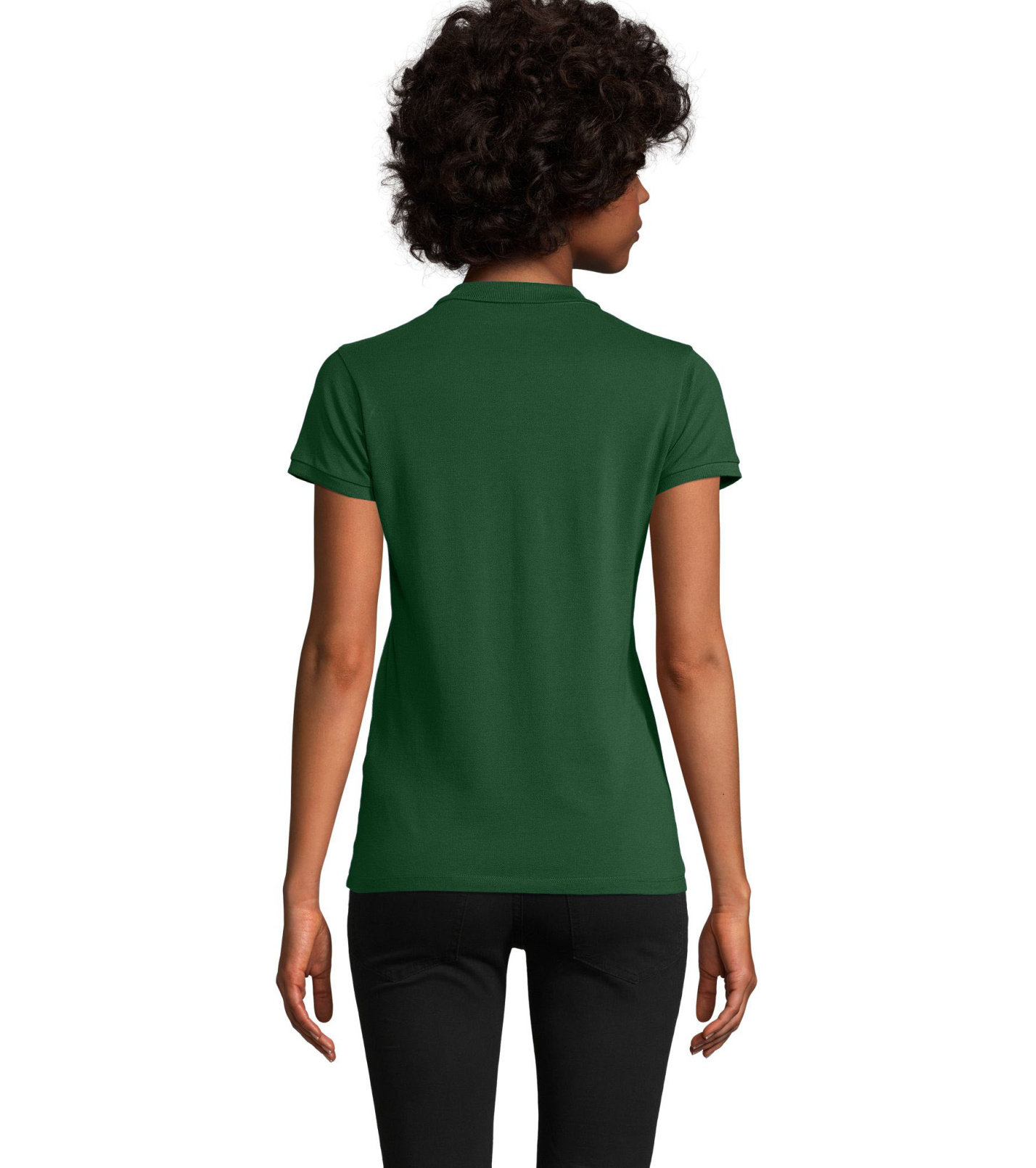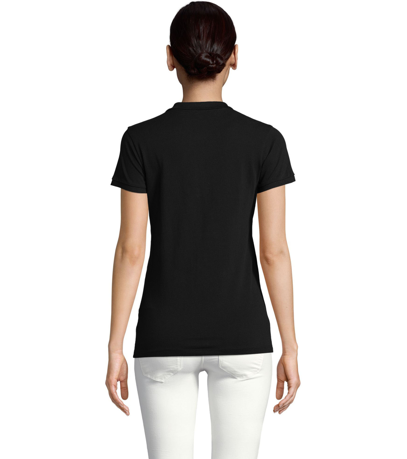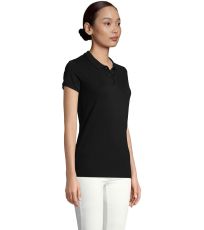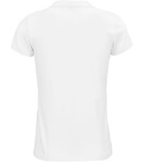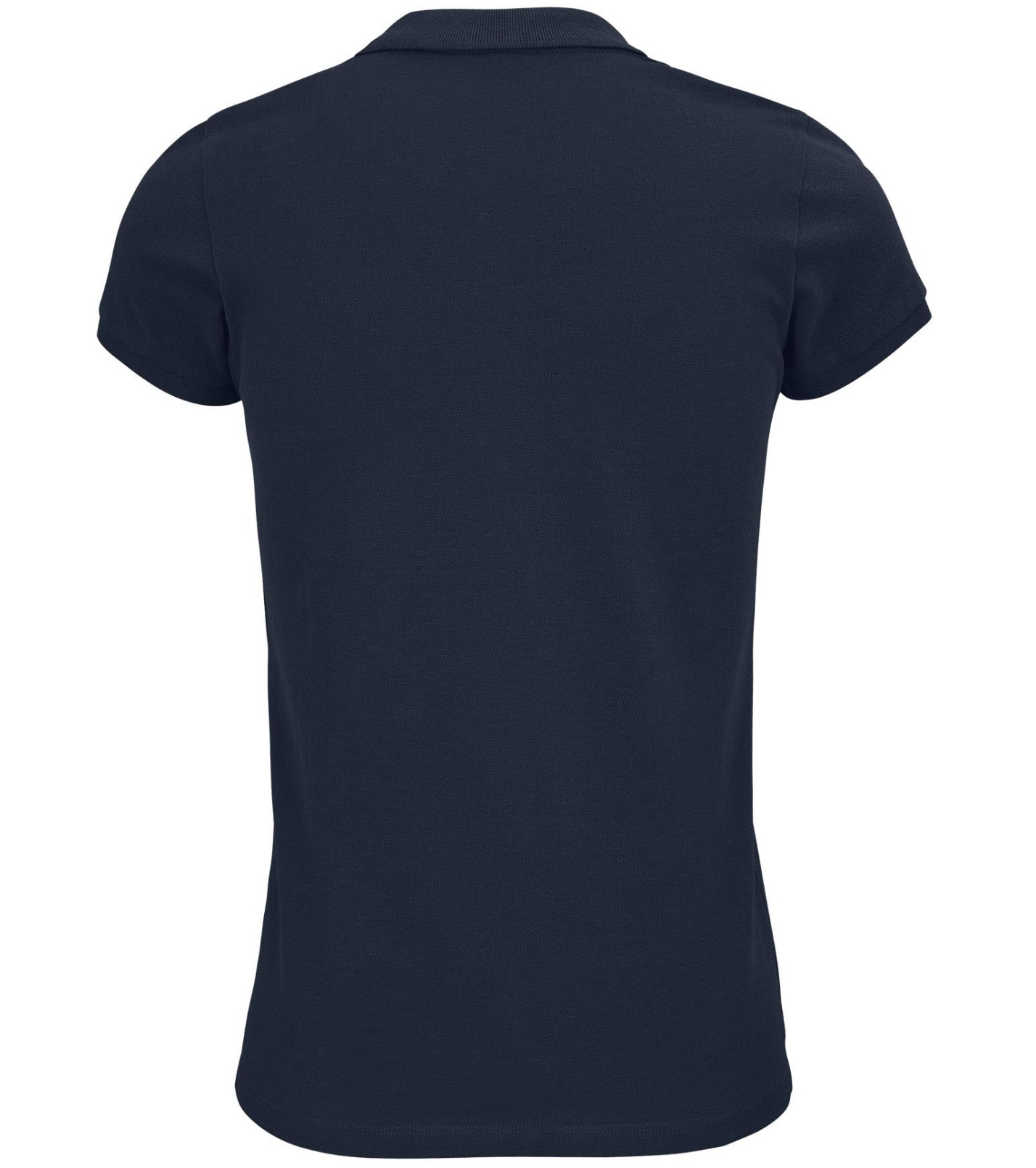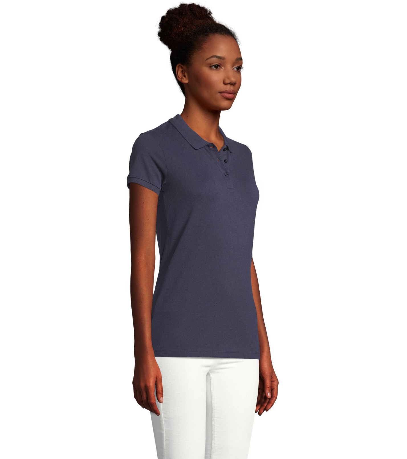 Damska koszulka polo z ekologicznej bawełny z krótkim rękawem. Prosty dół, boczne szwy i prążkowany kołnierz. Koszulka polo posiada trzy guziki w kolorze koszulki do zapięcia pod szyją oraz jeden zapasowy guzik w wewnętrznym szwie bocznym.