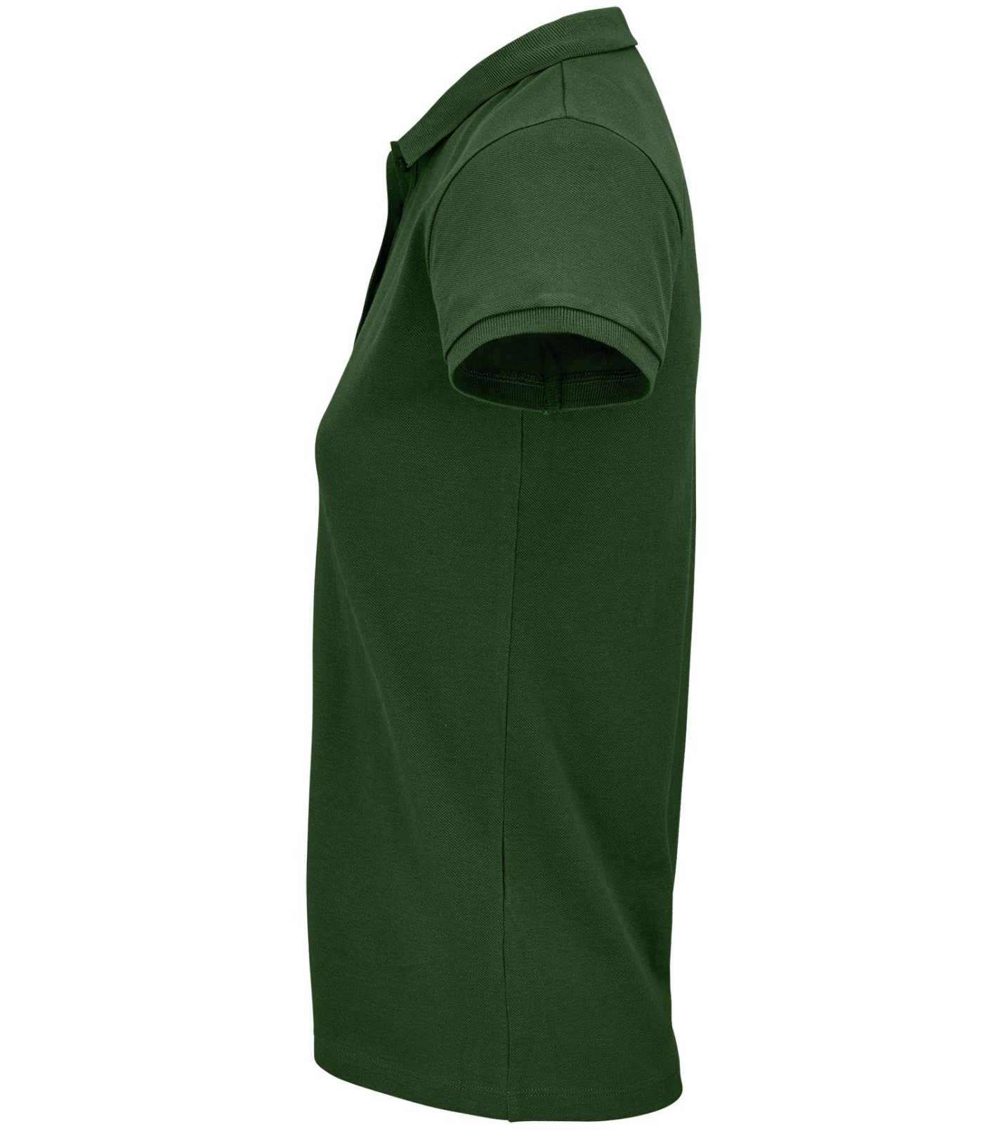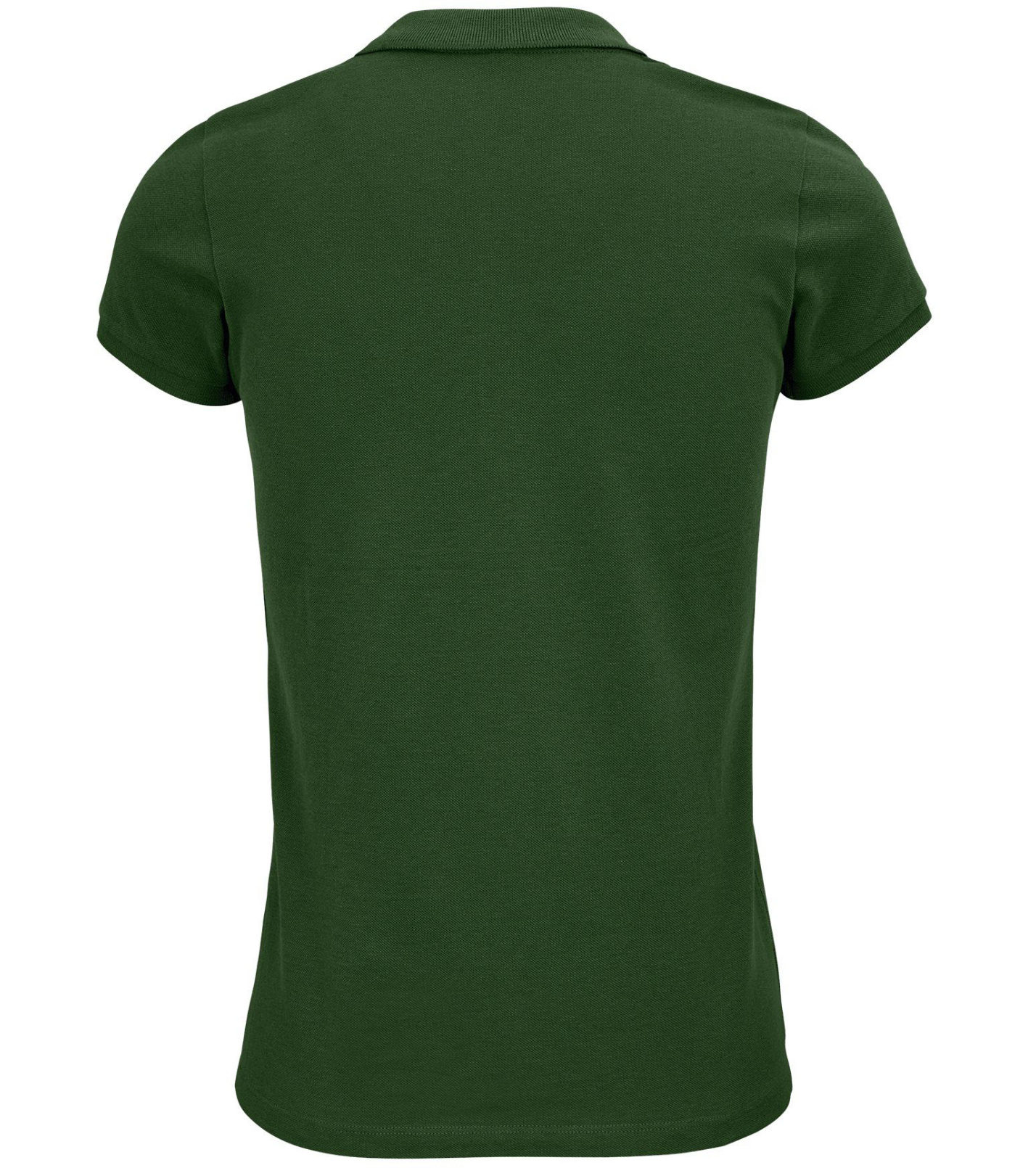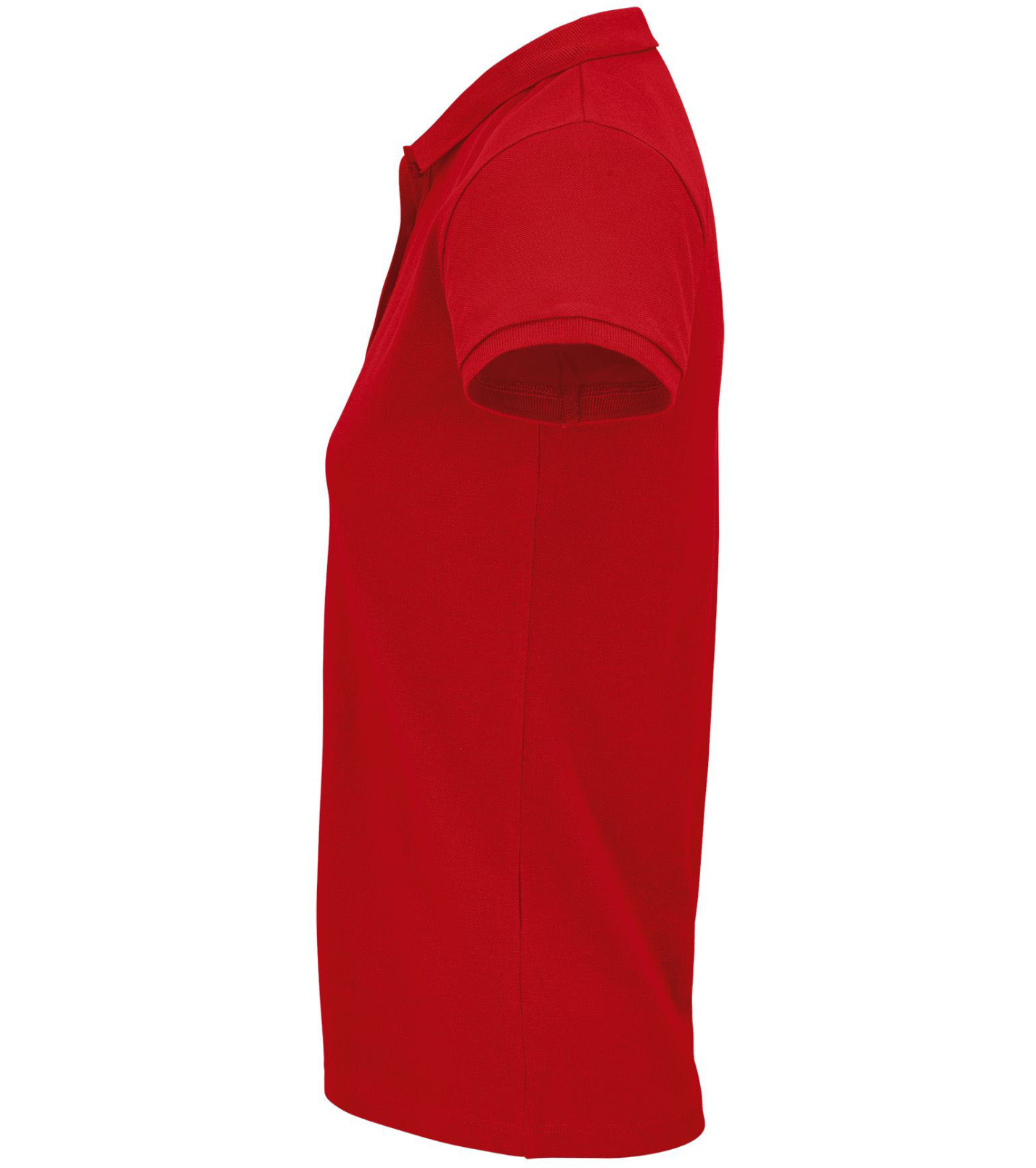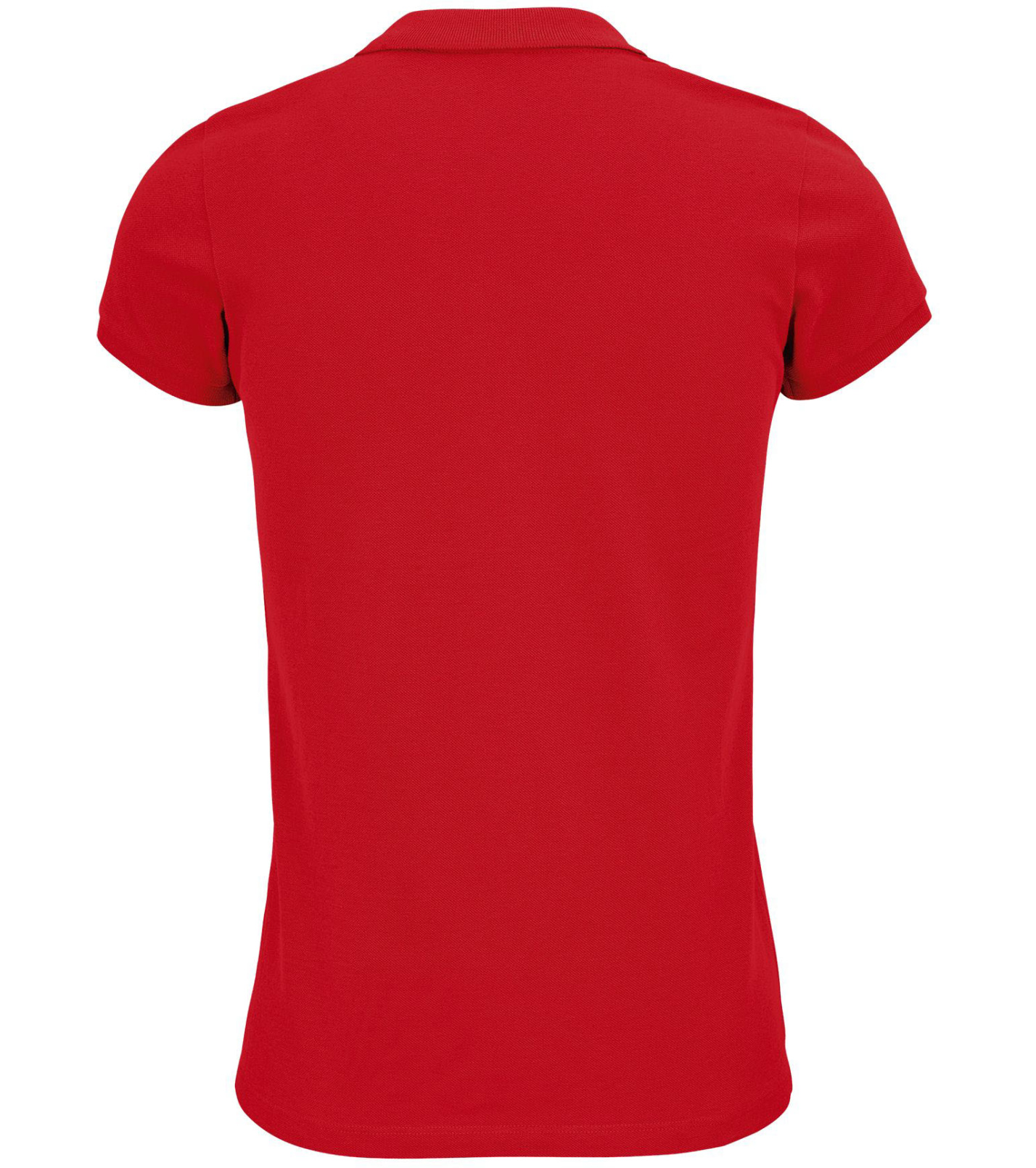 Damska koszulka polo z ekologicznej bawełny z krótkim rękawem. Prosty dół, boczne szwy i prążkowany kołnierz. Koszulka polo posiada trzy guziki w kolorze koszulki do zapięcia pod szyją oraz jeden zapasowy guzik w wewnętrznym szwie bocznym.