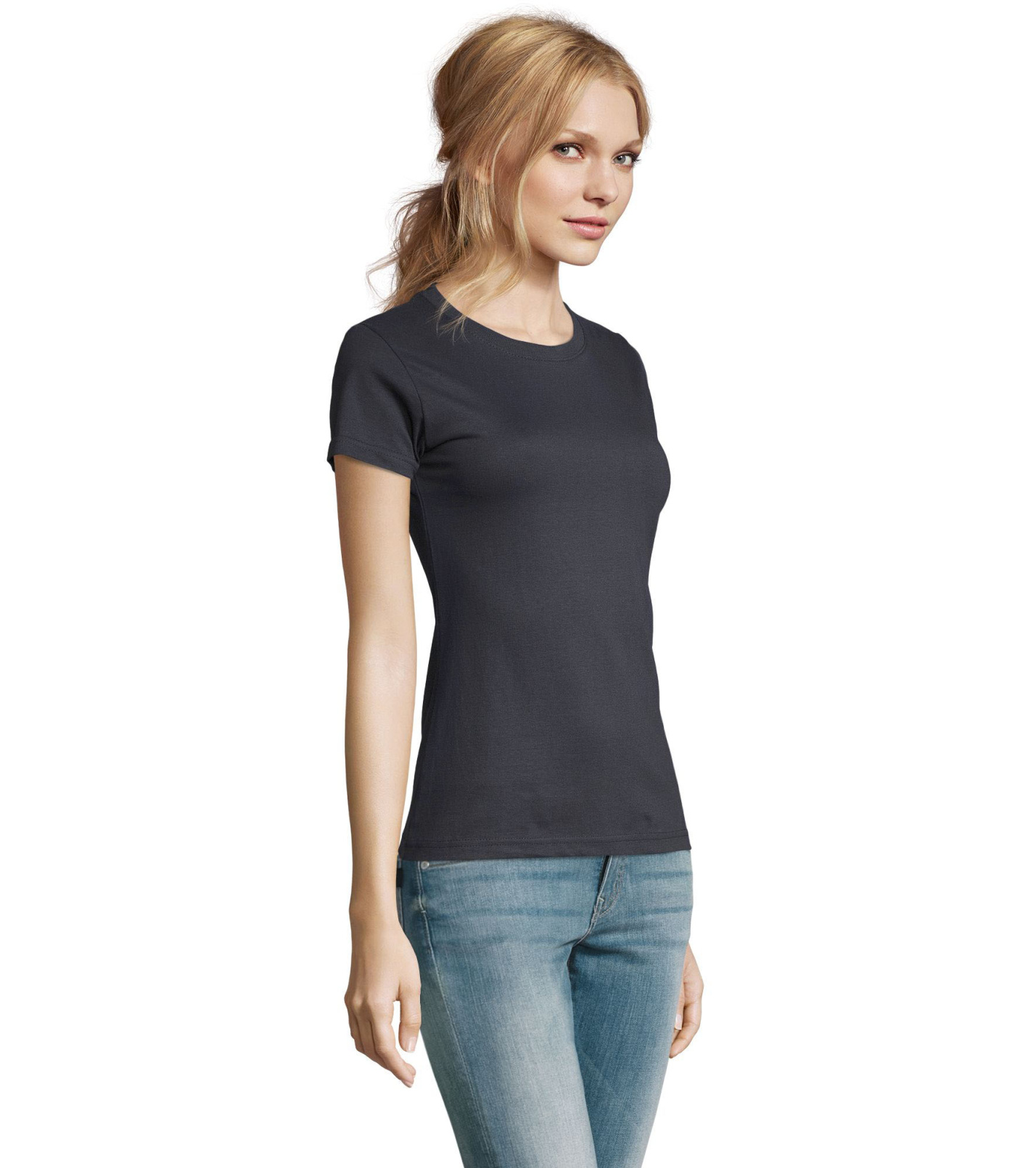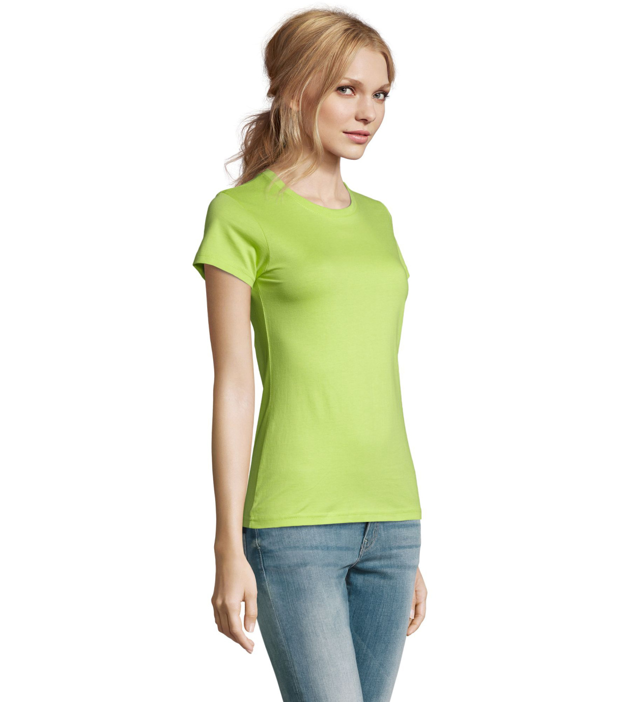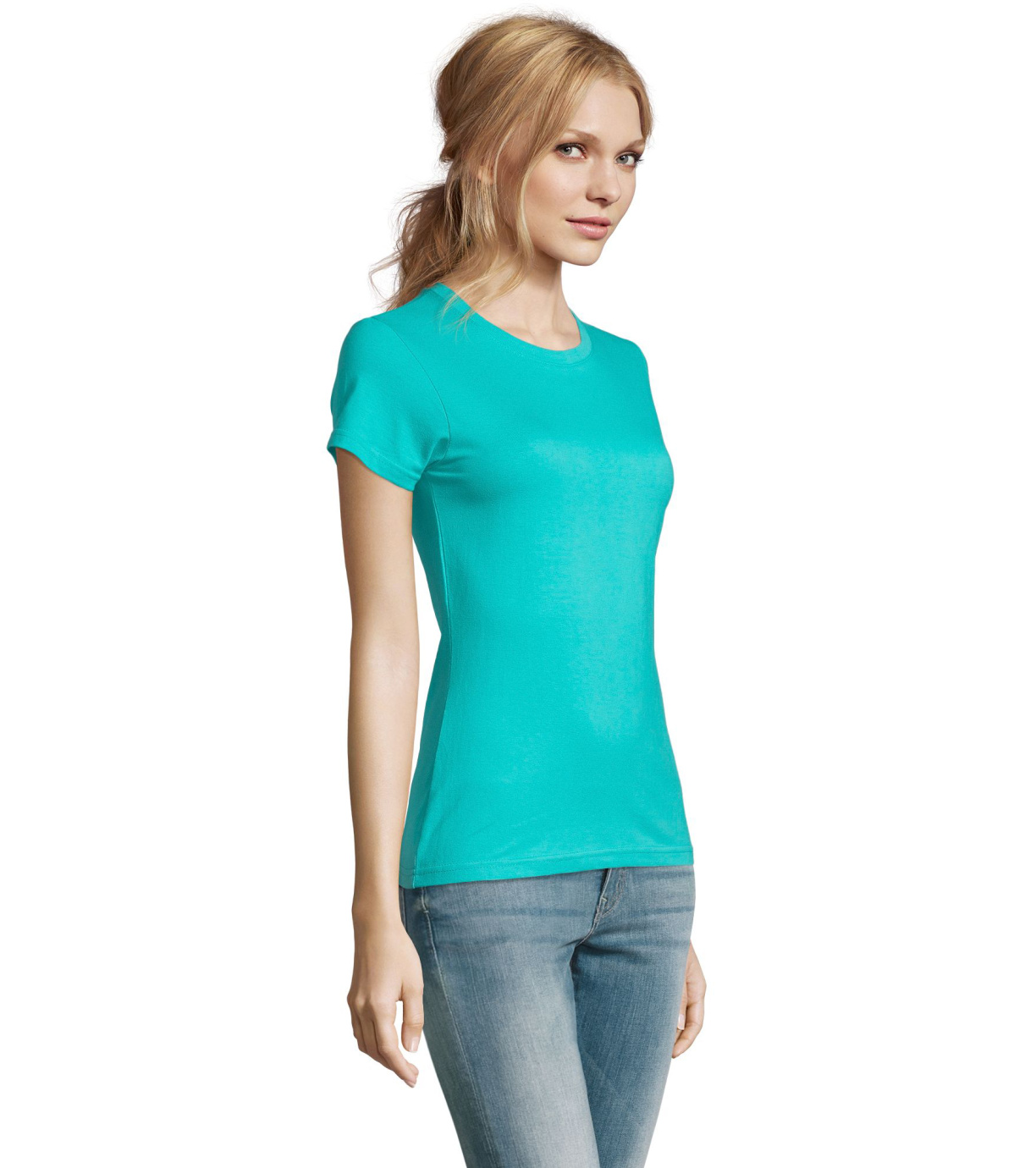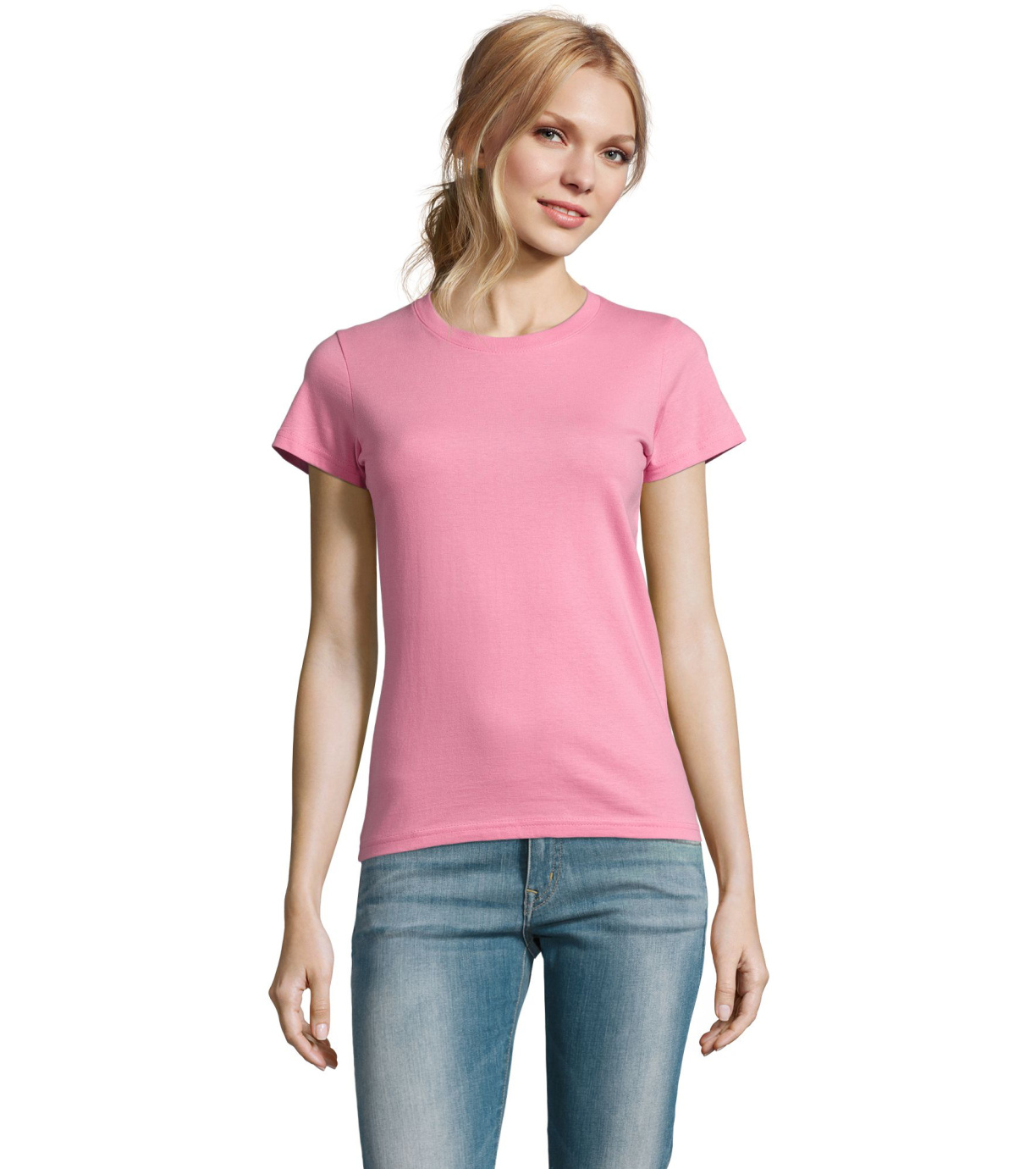 Damska bawełniana koszulka z krótkim rękawem. Dzięki obróbce powierzchni, jakości, 25 kolorom, 5 rozmiarom, wersji damskiej i dziecięcej, Imperial stał się popularnym elementem garderoby. T-shirt ma boczne szwy, podklejony i elastyczny kołnierzyk.