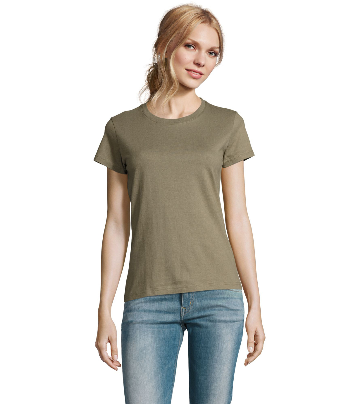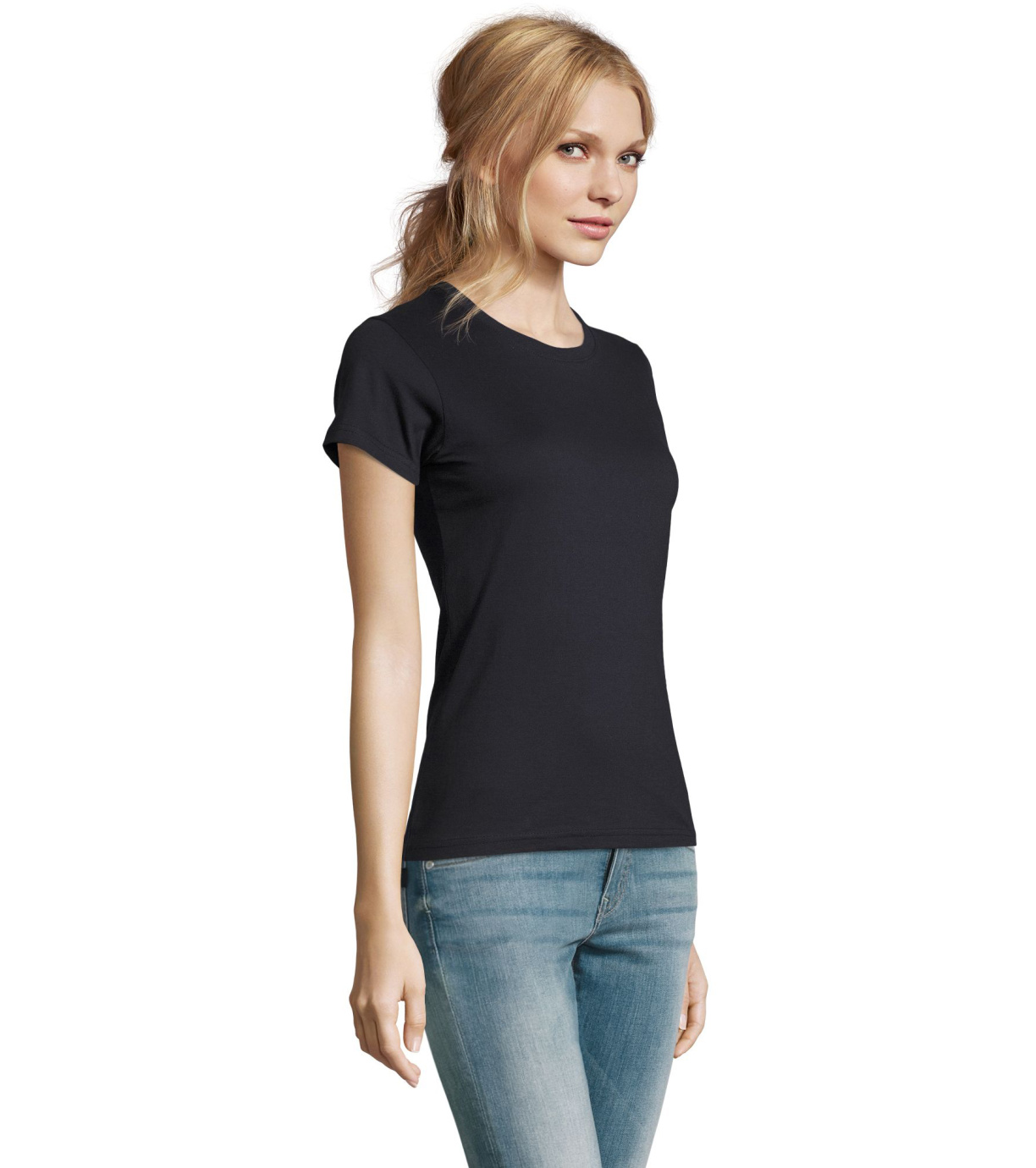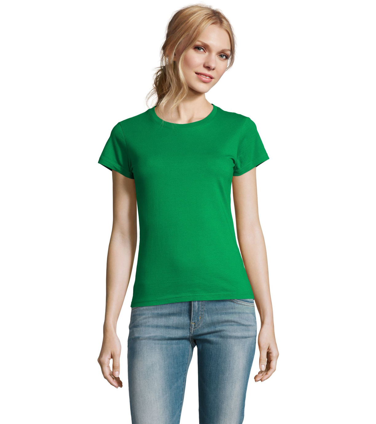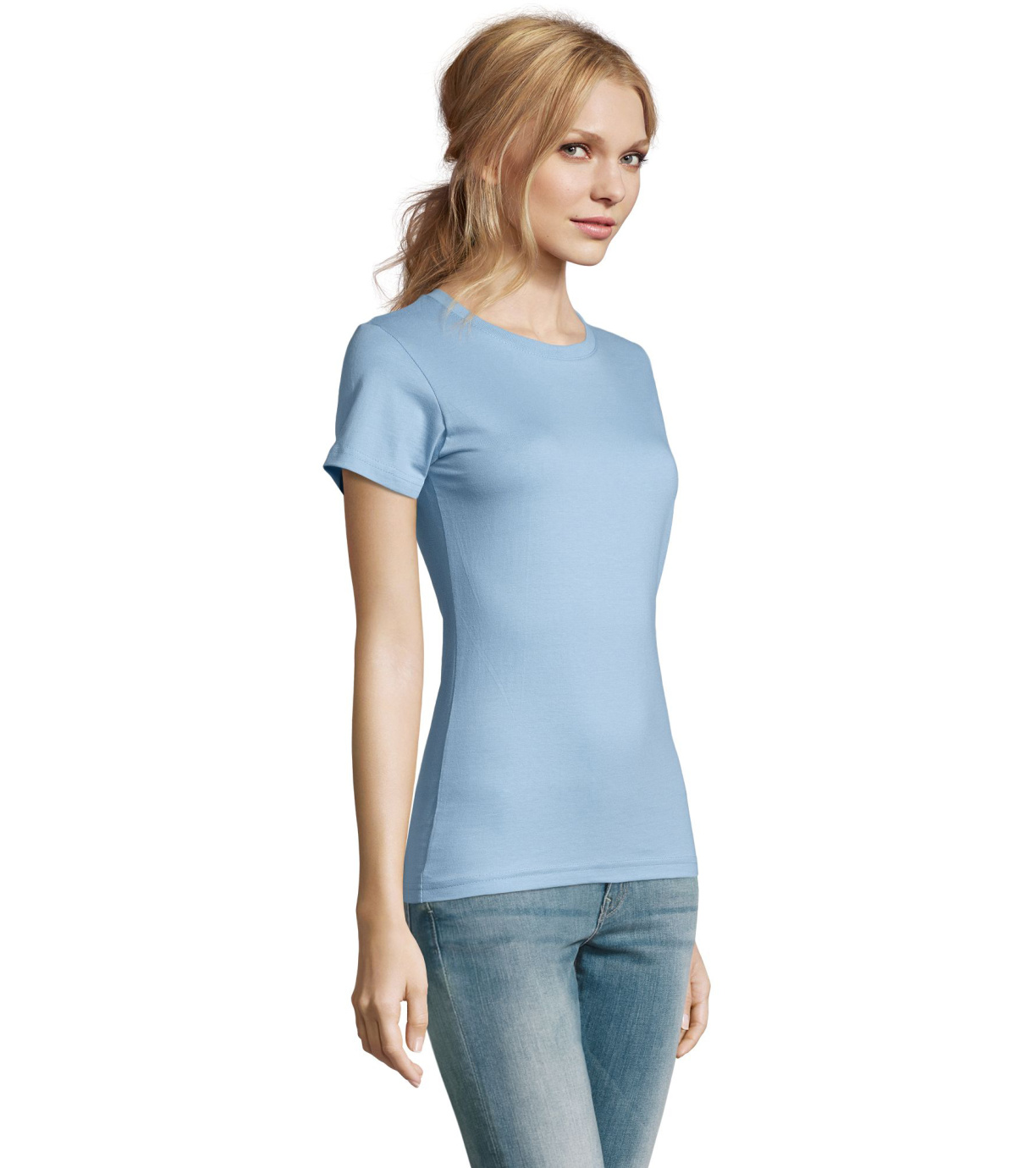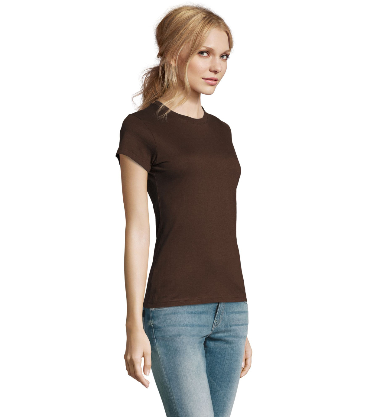 Damska bawełniana koszulka z krótkim rękawem. Dzięki obróbce powierzchni, jakości, 25 kolorom, 5 rozmiarom, wersji damskiej i dziecięcej, Imperial stał się popularnym elementem garderoby. T-shirt ma boczne szwy, podklejony i elastyczny kołnierzyk.
