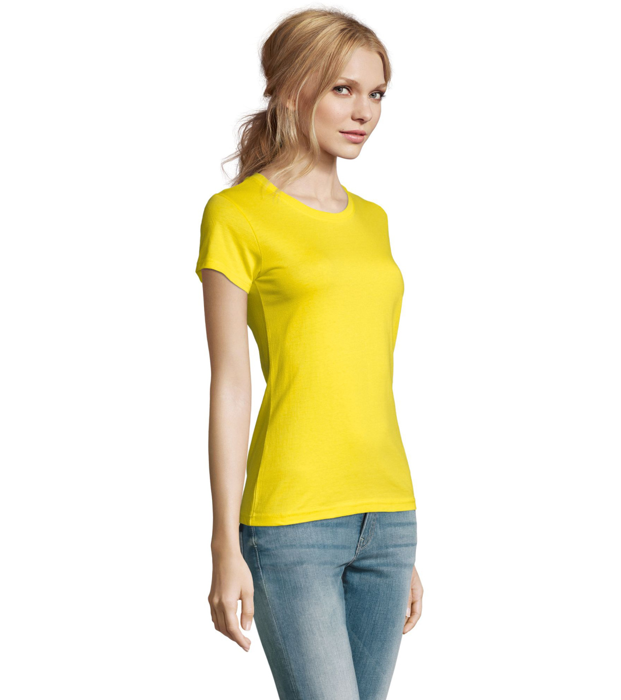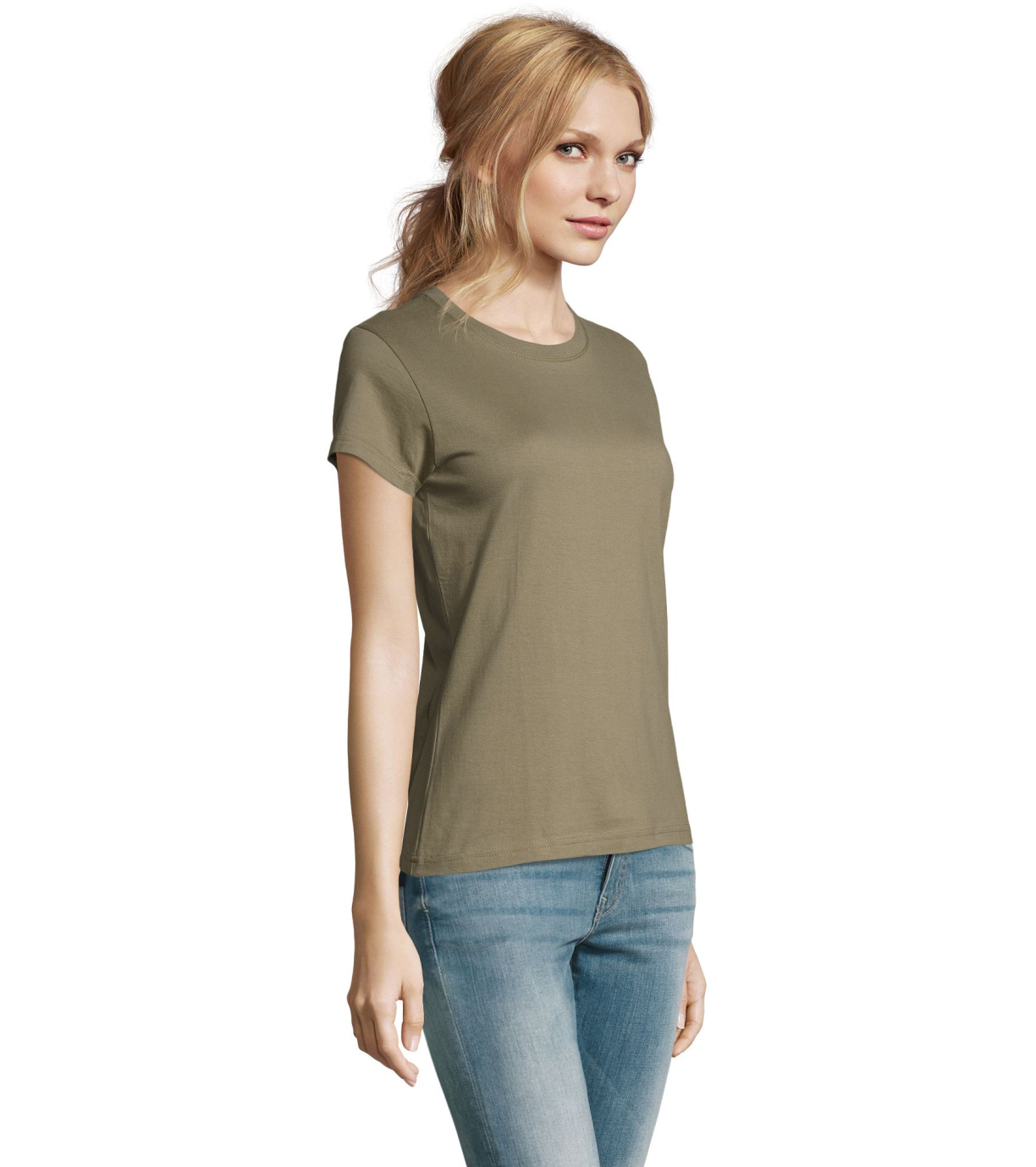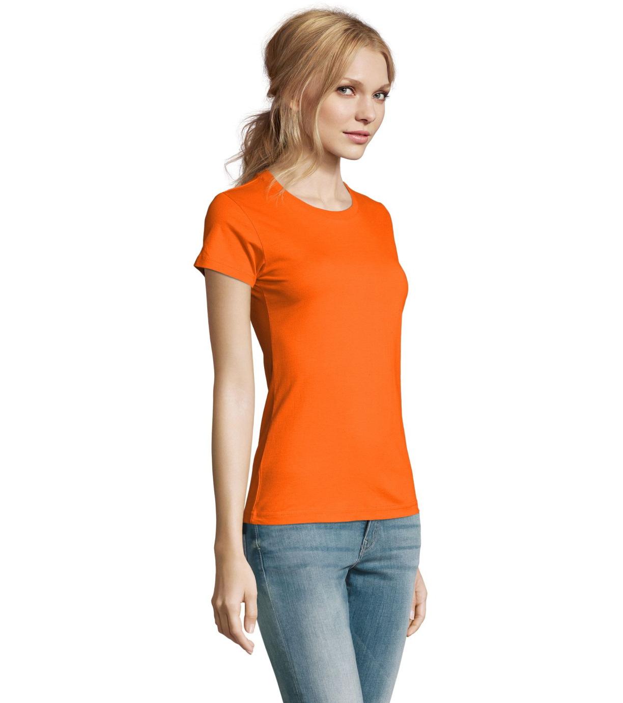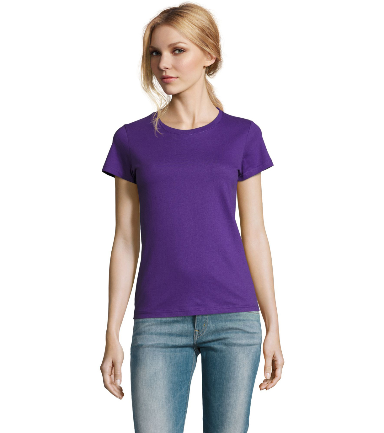 Damska bawełniana koszulka z krótkim rękawem. Dzięki obróbce powierzchni, jakości, 25 kolorom, 5 rozmiarom, wersji damskiej i dziecięcej, Imperial stał się popularnym elementem garderoby. T-shirt ma boczne szwy, podklejony i elastyczny kołnierzyk.