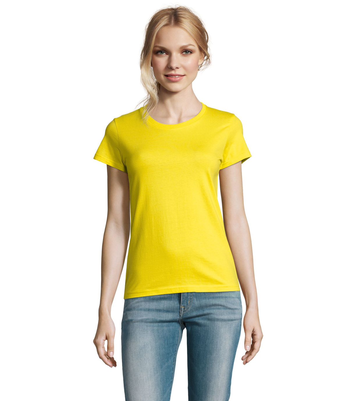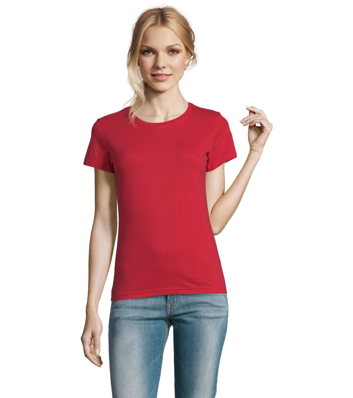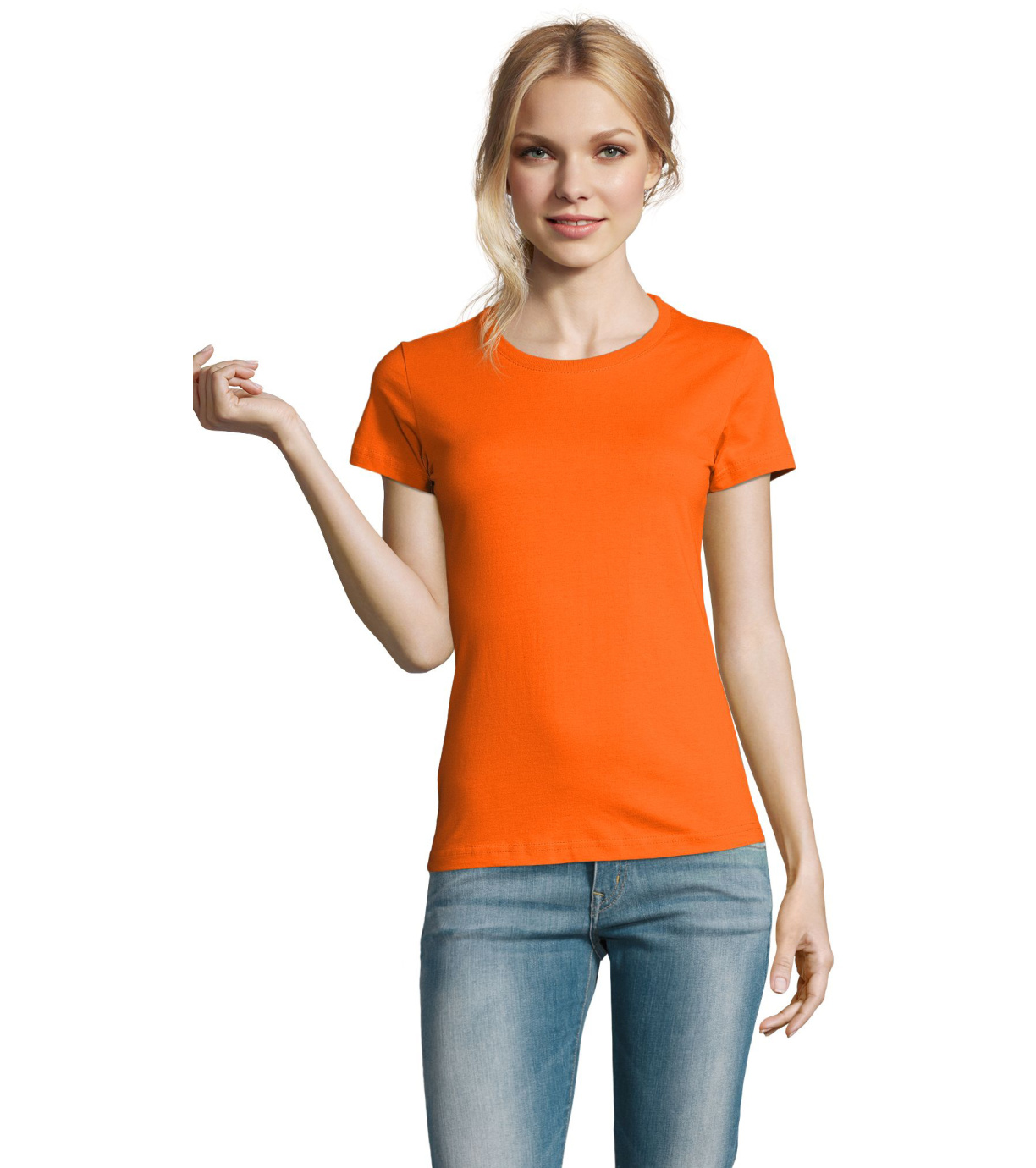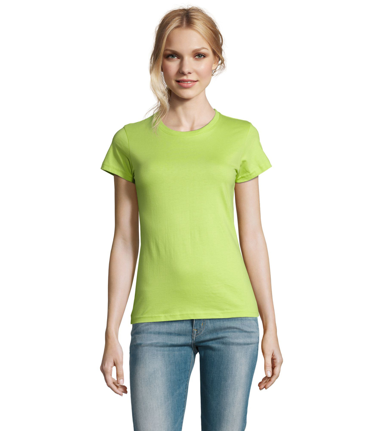 Damska bawełniana koszulka z krótkim rękawem. Dzięki obróbce powierzchni, jakości, 25 kolorom, 5 rozmiarom, wersji damskiej i dziecięcej, Imperial stał się popularnym elementem garderoby. T-shirt ma boczne szwy, podklejony i elastyczny kołnierzyk.
