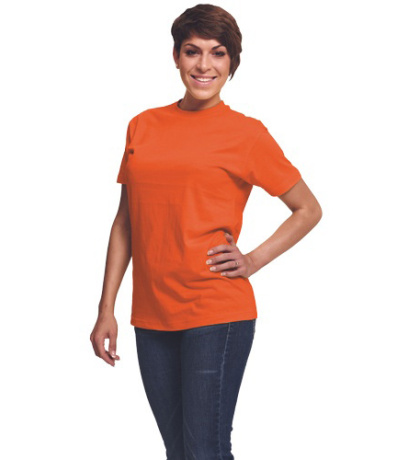 Koszulka z krótkim rękawem odpowiednia do nadruku lub haftu. Pod szyją 5% elastanu.