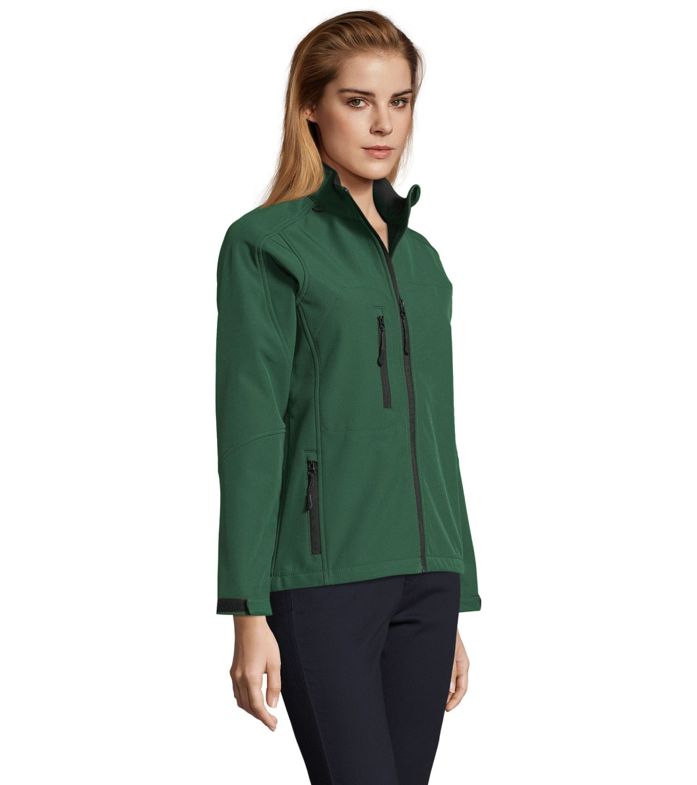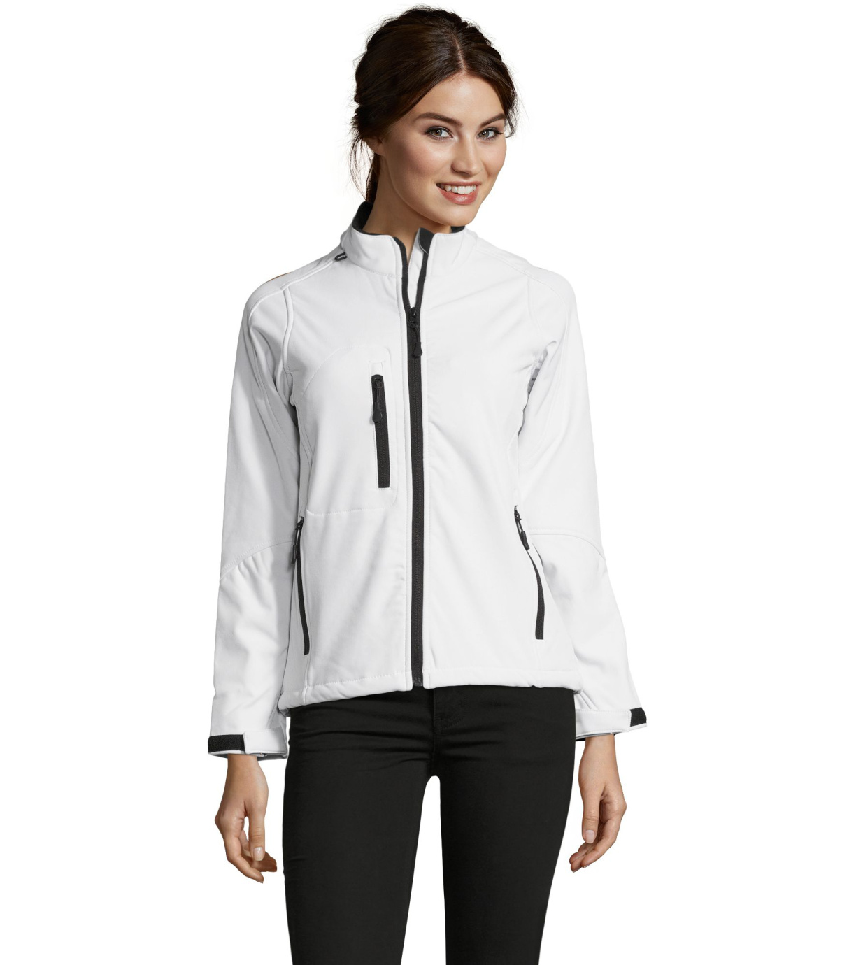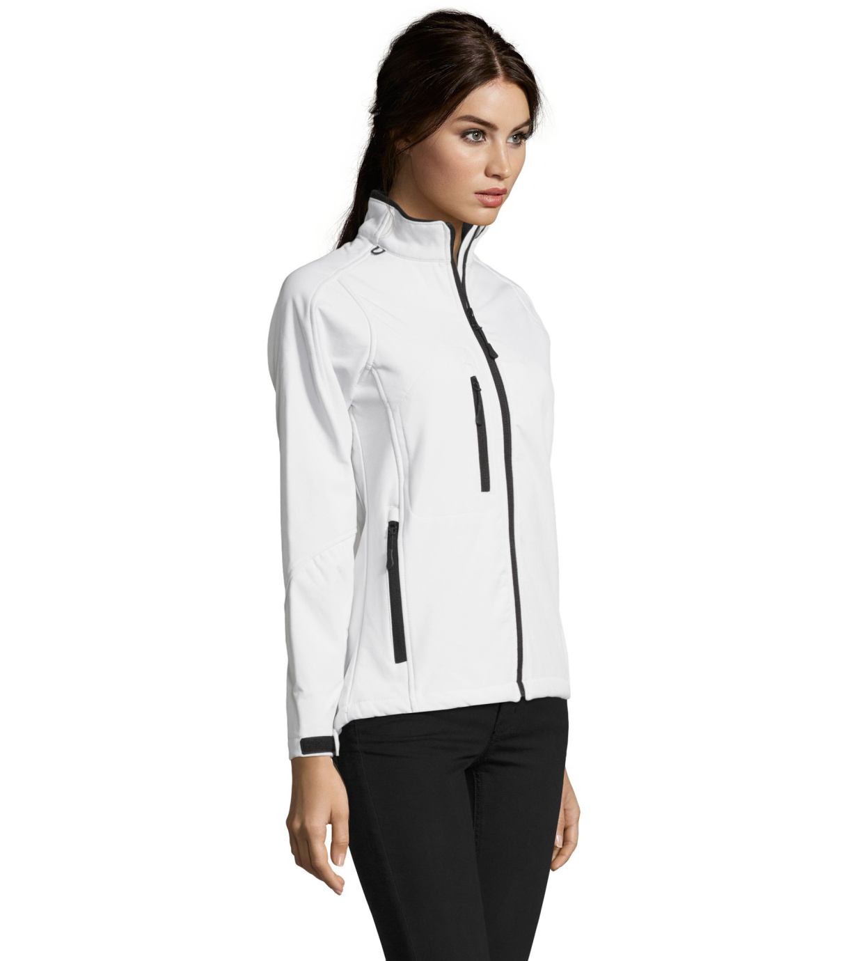 Kurtka softshell bez kaptura. W kobiecym i jednocześnie sportowym kroju. Na dole kurtki znajduje się sznurek do regulacji. Kurtka ma dwie kieszenie boczne i jedną kieszeń na piersi zapinaną na zamek. Regulowane mankiety na rzepy to oczywistość. Wodoodporna oddychająca membrana o grubości 8000 mm.