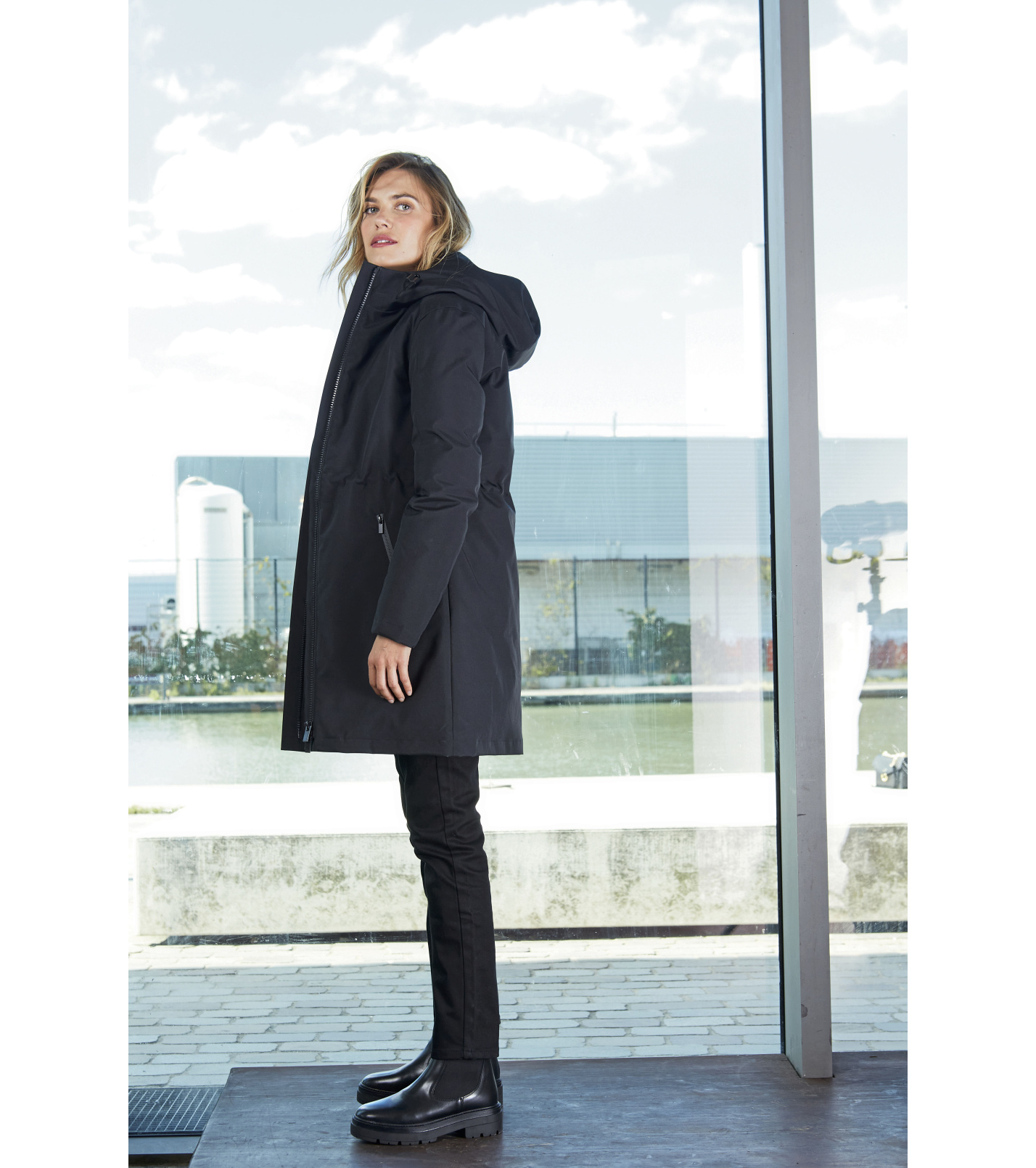 Materiał zewnętrzny: dwuwarstwowa tafta – 100% poliester z recyklingu z membraną TPU, Podszewka: tafta – 100% poliester z recyklingu 400T, Wypełnienie: puch – 100% poliester z recyklingu