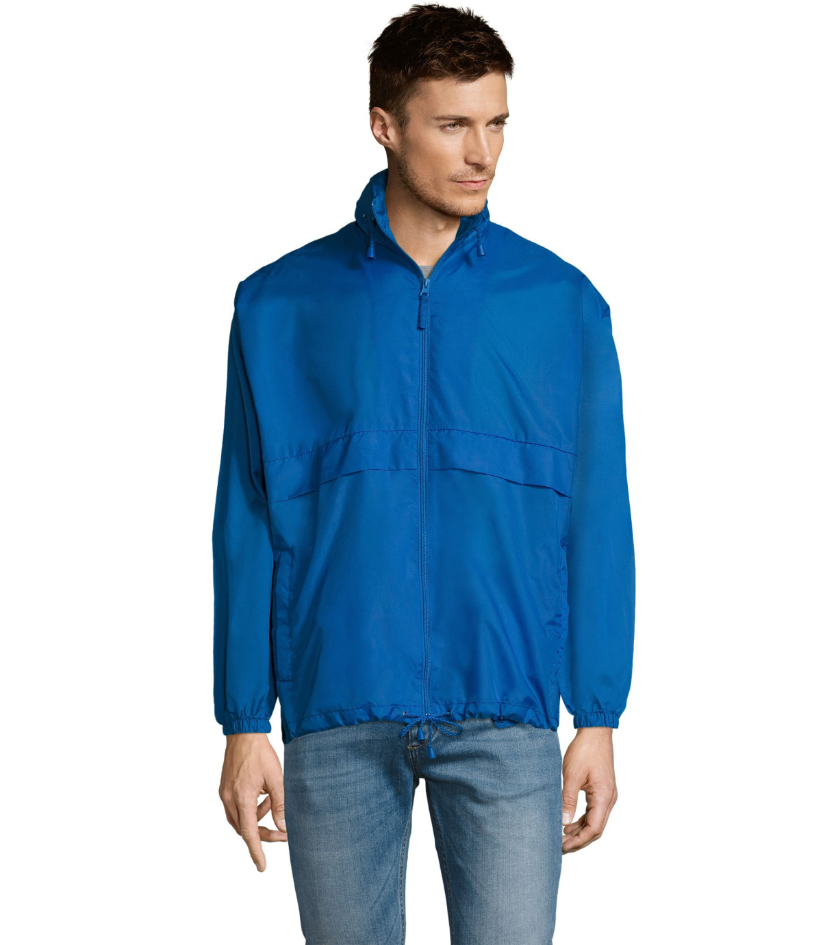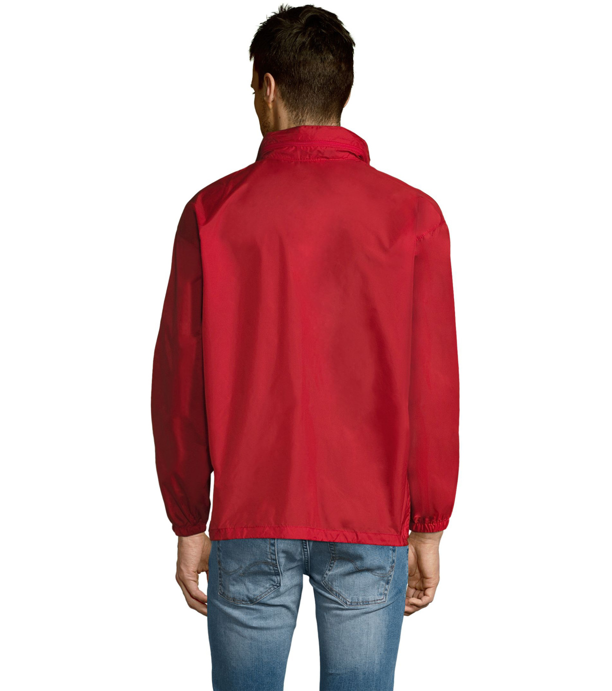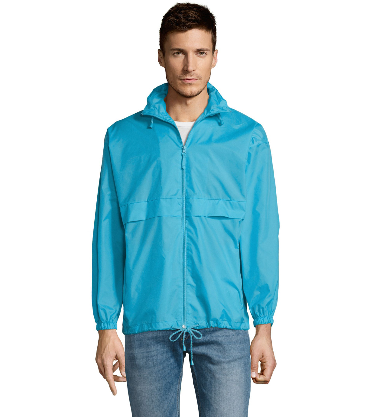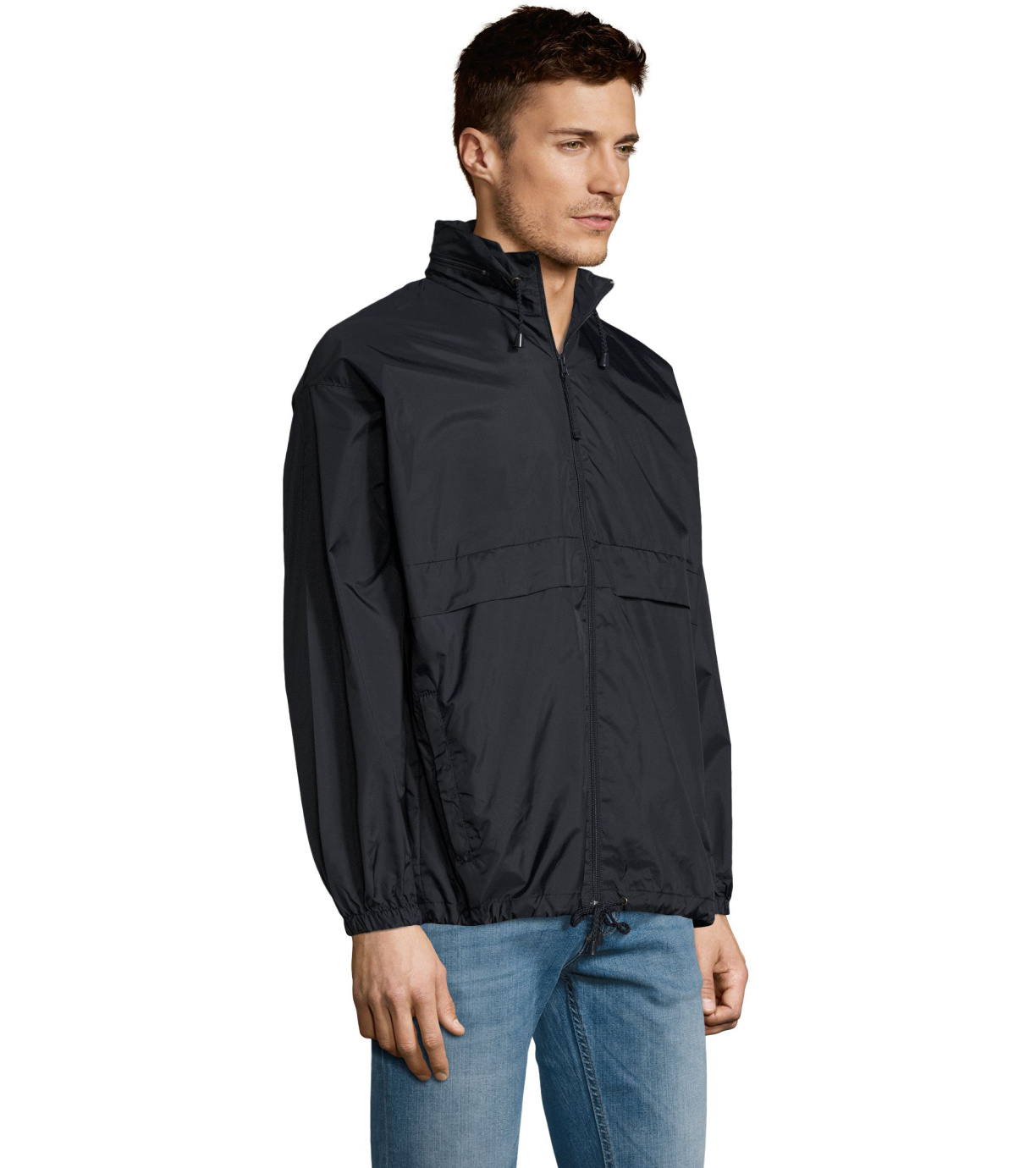 Zapinana na zamek wiatrówka z kapturem, który można schować w kołnierzu. Kołnierzyk ma ściągacz. System składania „In bag” z elastycznymi sznurkami w talii, ułatwiającymi dopasowanie do mniejszego rozmiaru. Elastyczne mankiety i oczka wentylacyjne to oczywistość. Dwie kieszenie zapinane na zamek. Materiał wodoodporny.