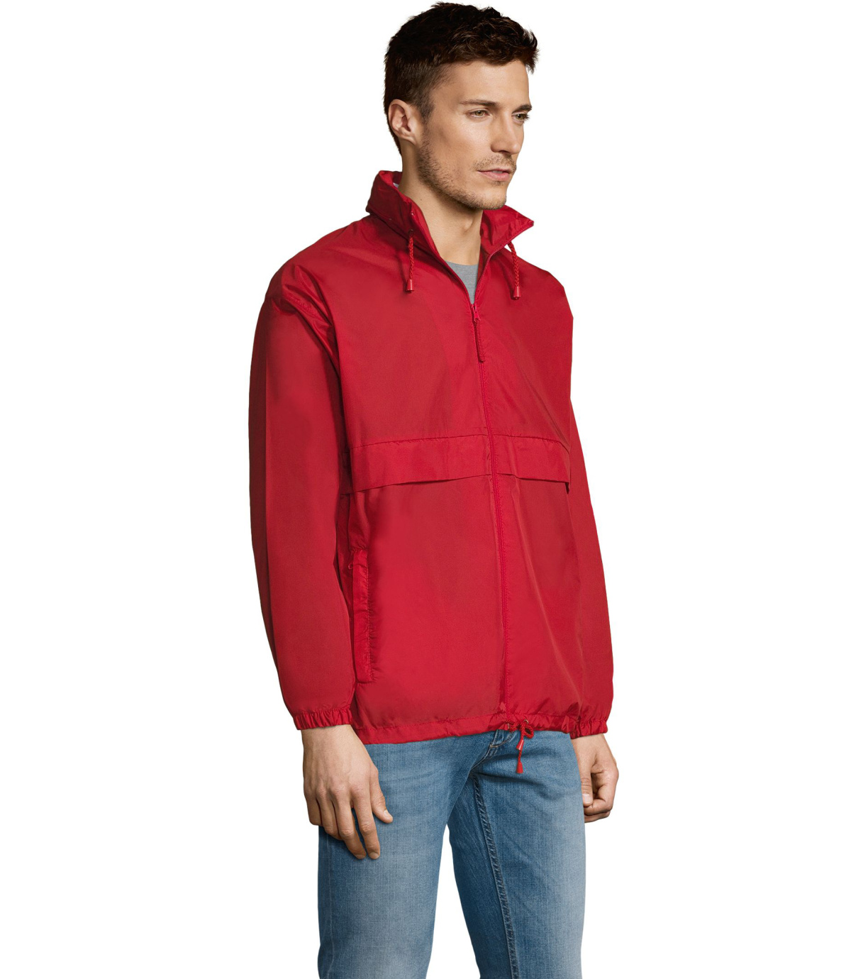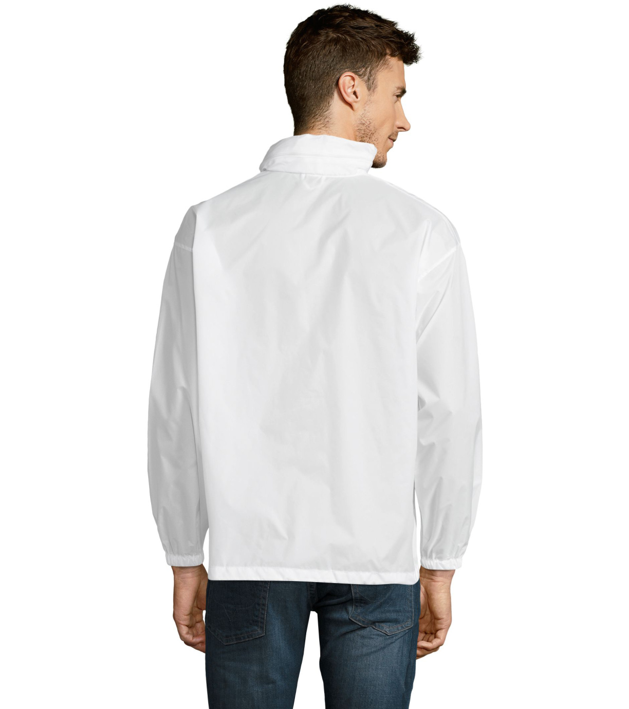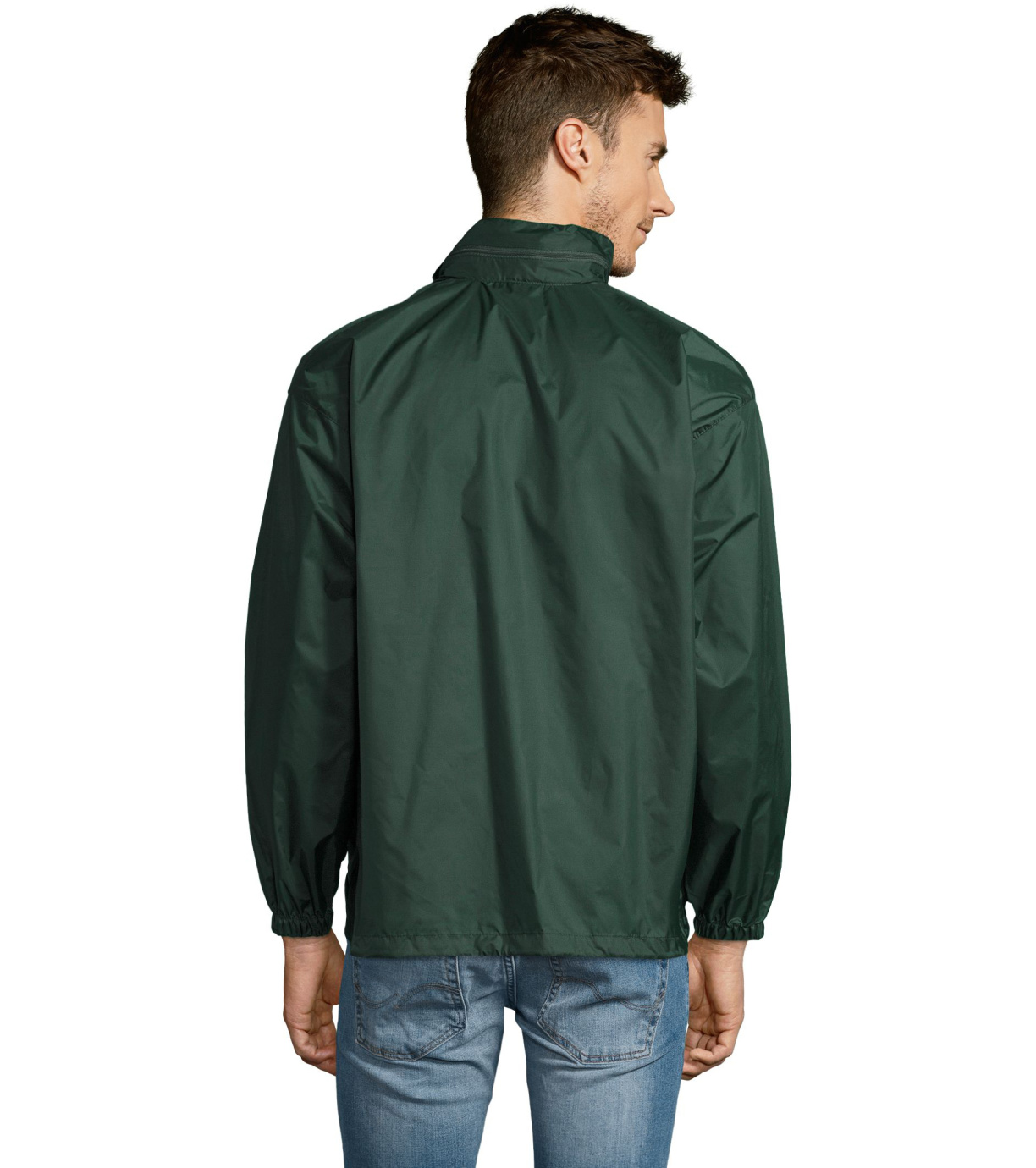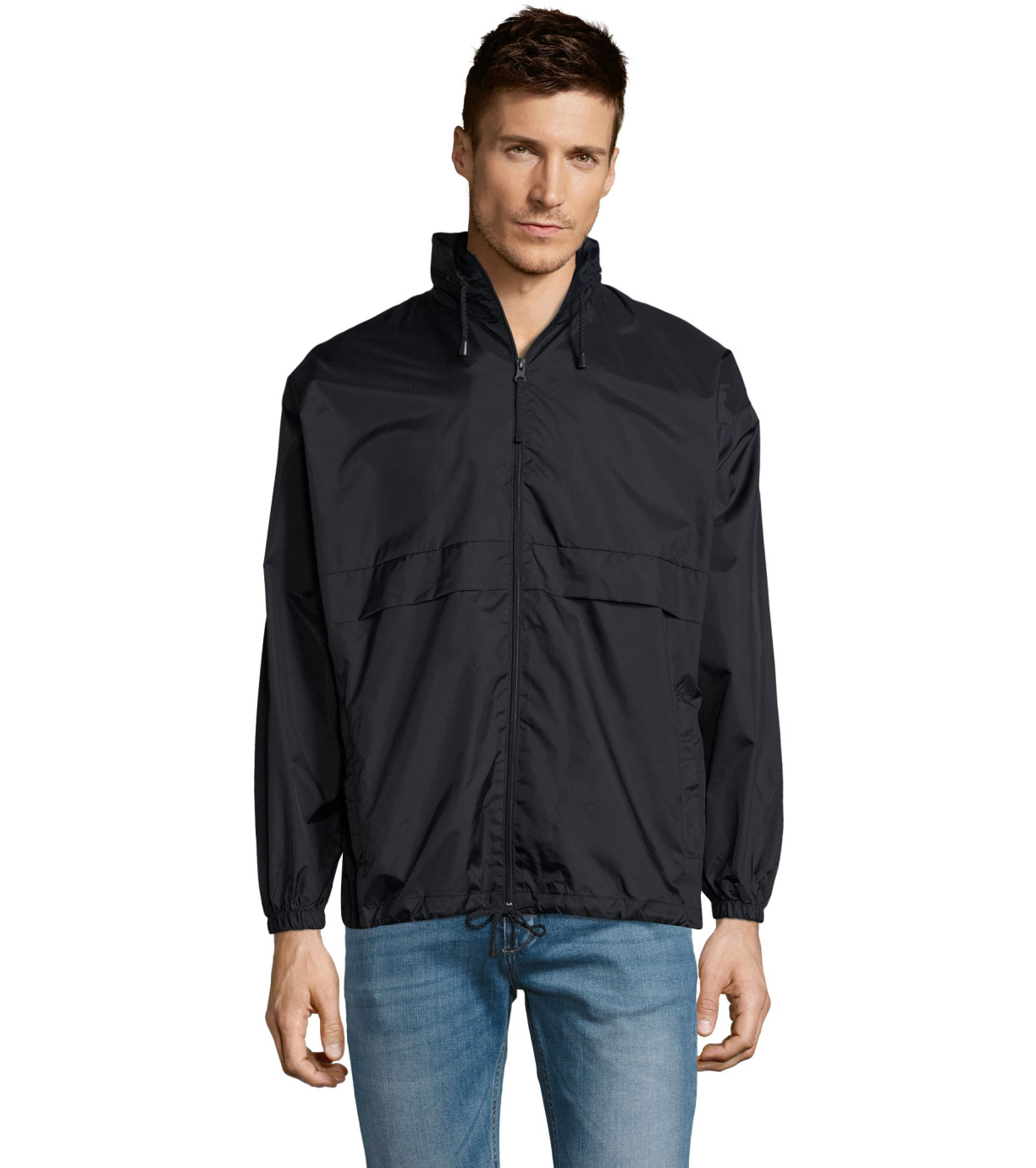 Zapinana na zamek wiatrówka z kapturem, który można schować w kołnierzu. Kołnierzyk ma ściągacz. System składania „In bag” z elastycznymi sznurkami w talii, ułatwiającymi dopasowanie do mniejszego rozmiaru. Elastyczne mankiety i oczka wentylacyjne to oczywistość. Dwie kieszenie zapinane na zamek. Materiał wodoodporny.