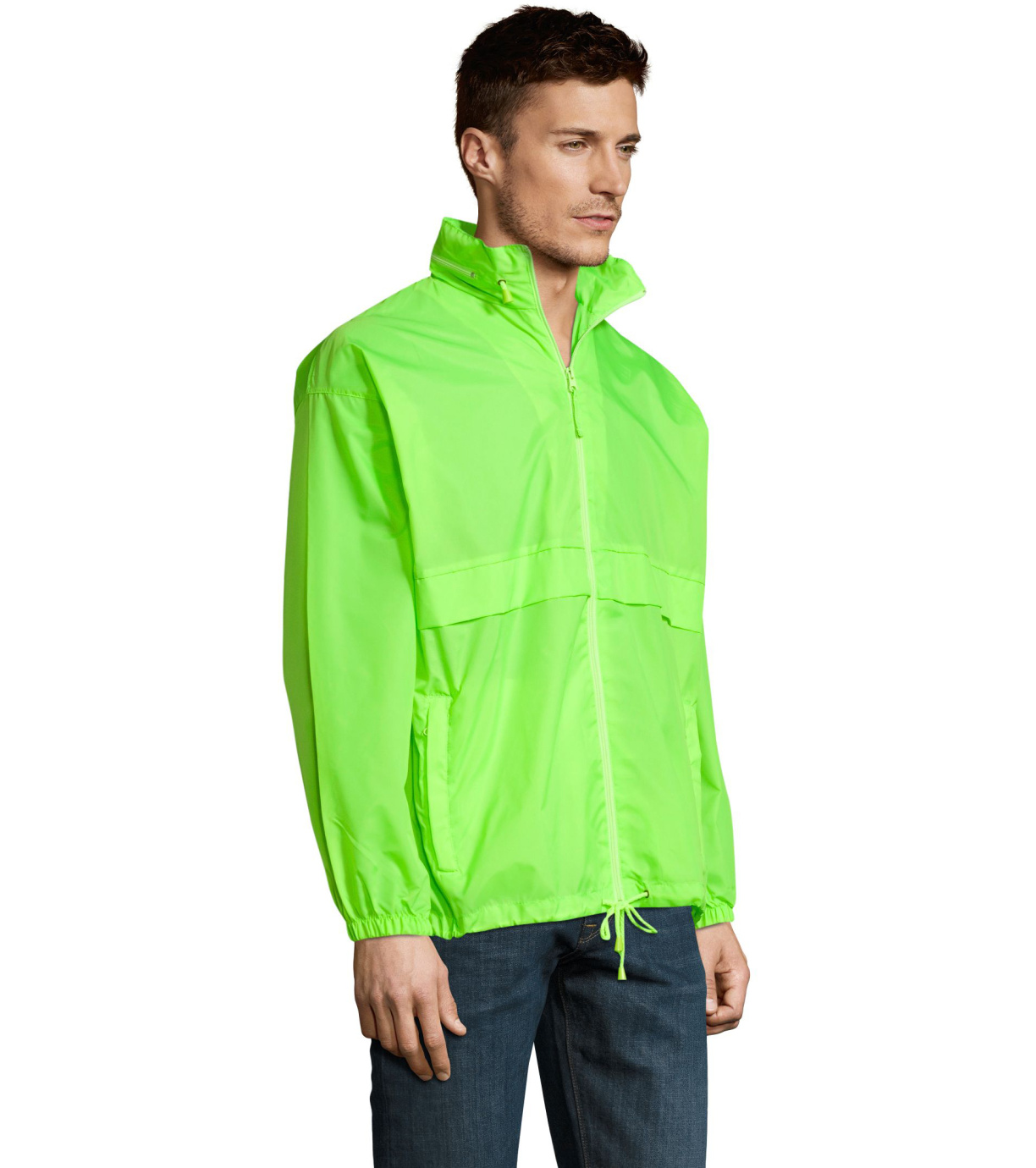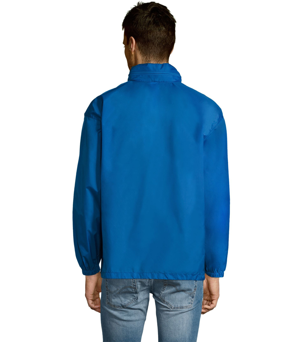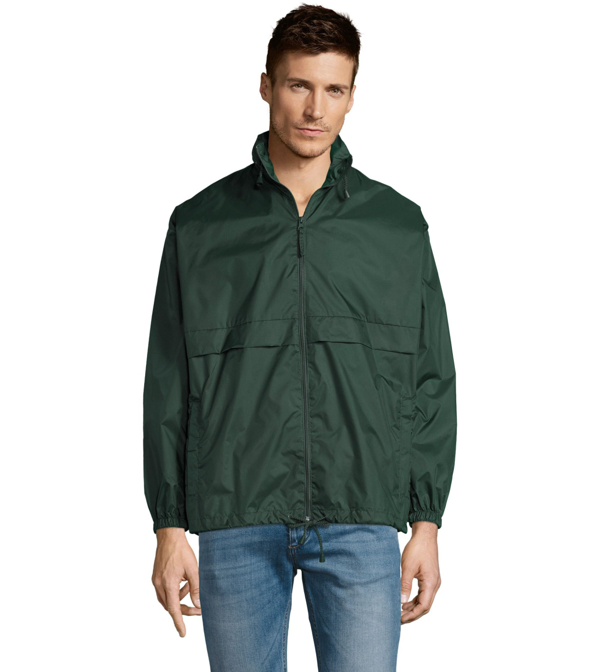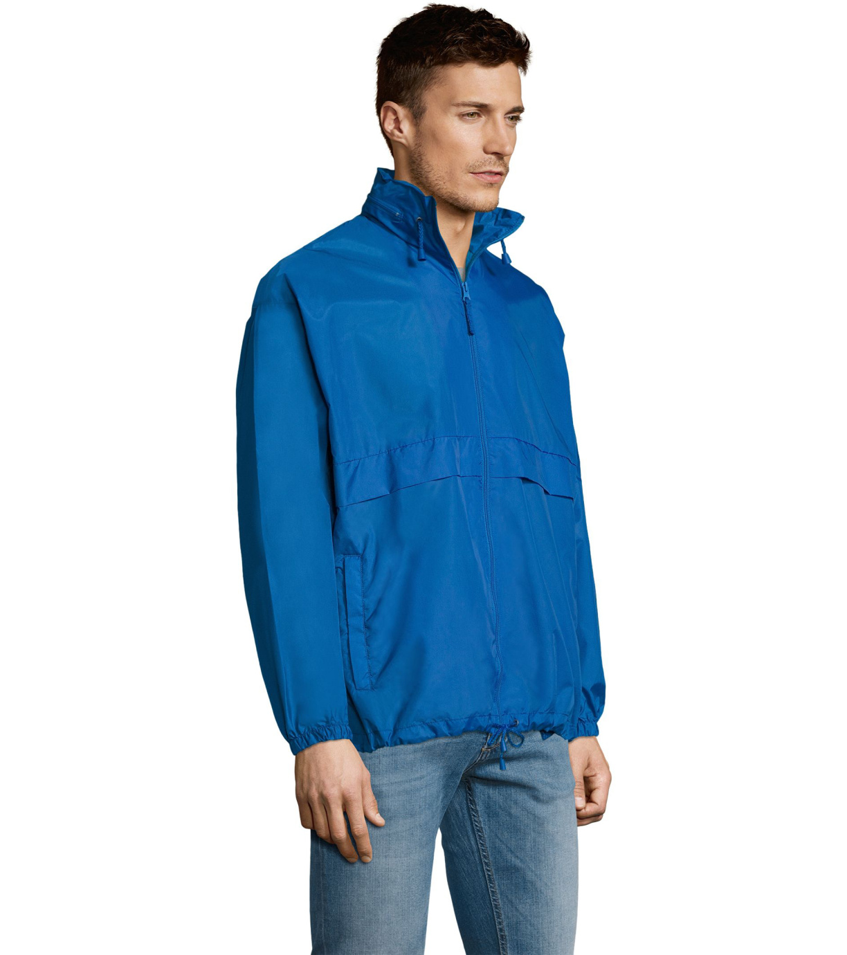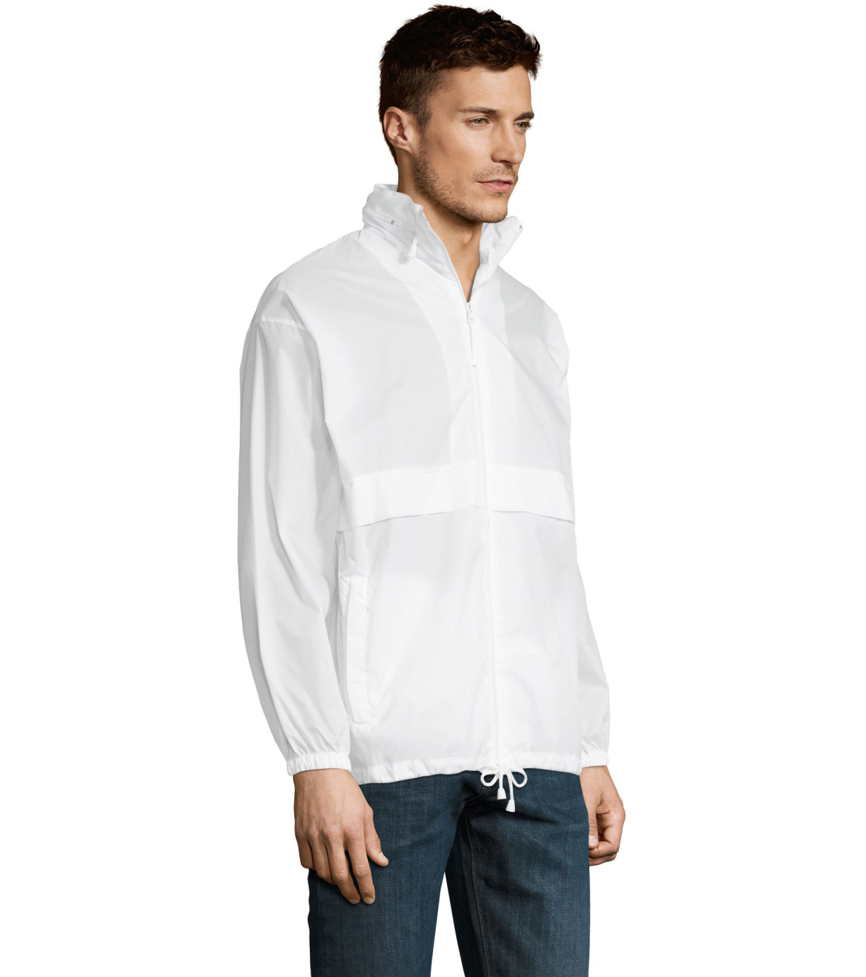Zapinana na zamek wiatrówka z kapturem, który można schować w kołnierzu. Kołnierzyk ma ściągacz. System składania „In bag” z elastycznymi sznurkami w talii, ułatwiającymi dopasowanie do mniejszego rozmiaru. Elastyczne mankiety i oczka wentylacyjne to oczywistość. Dwie kieszenie zapinane na zamek. Materiał wodoodporny.