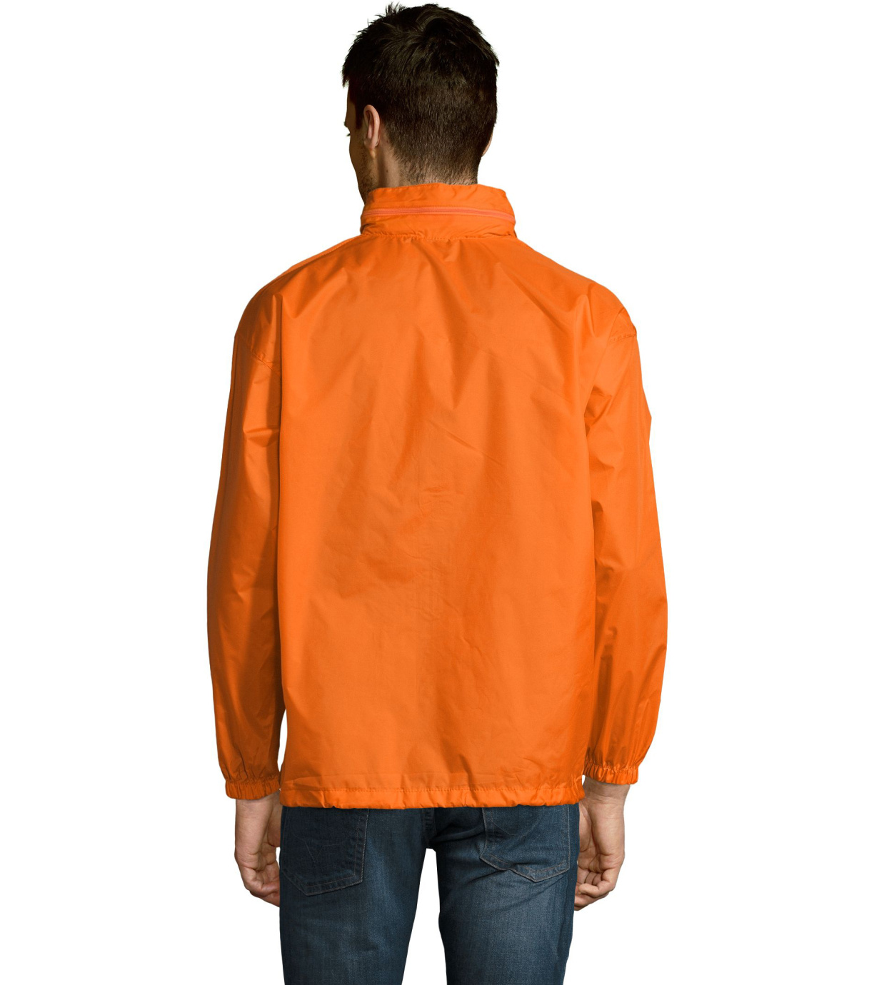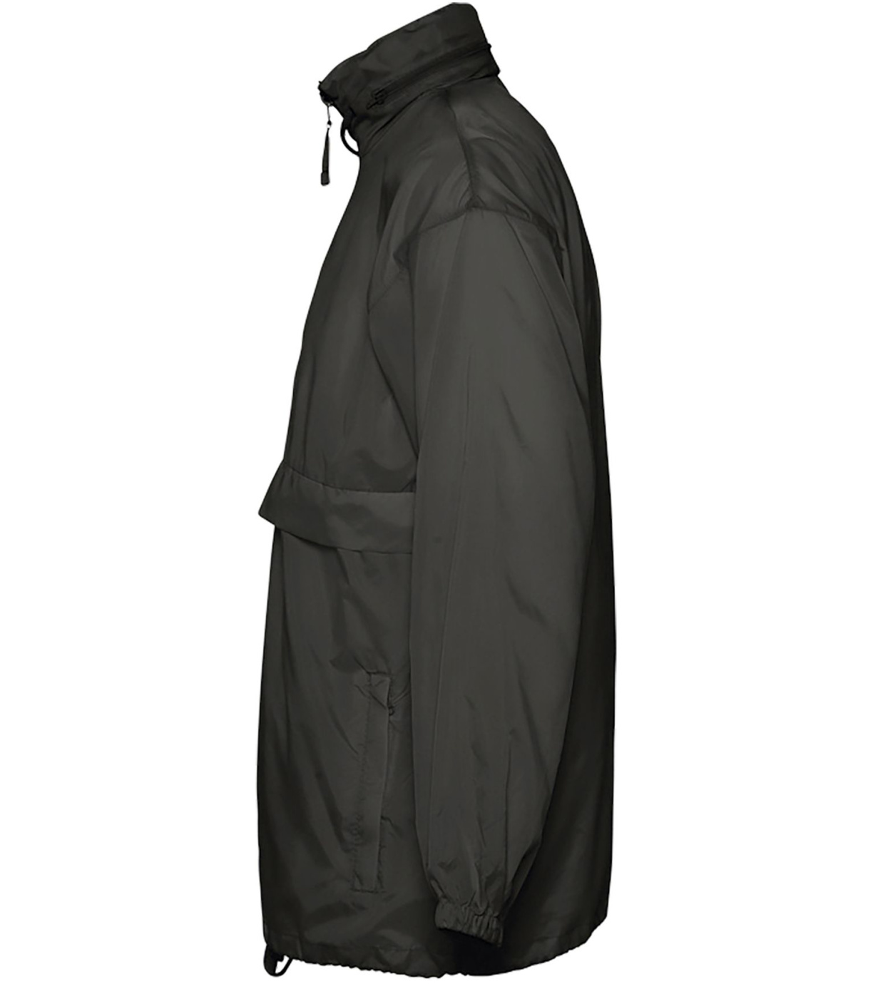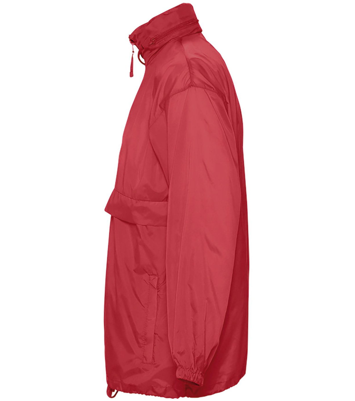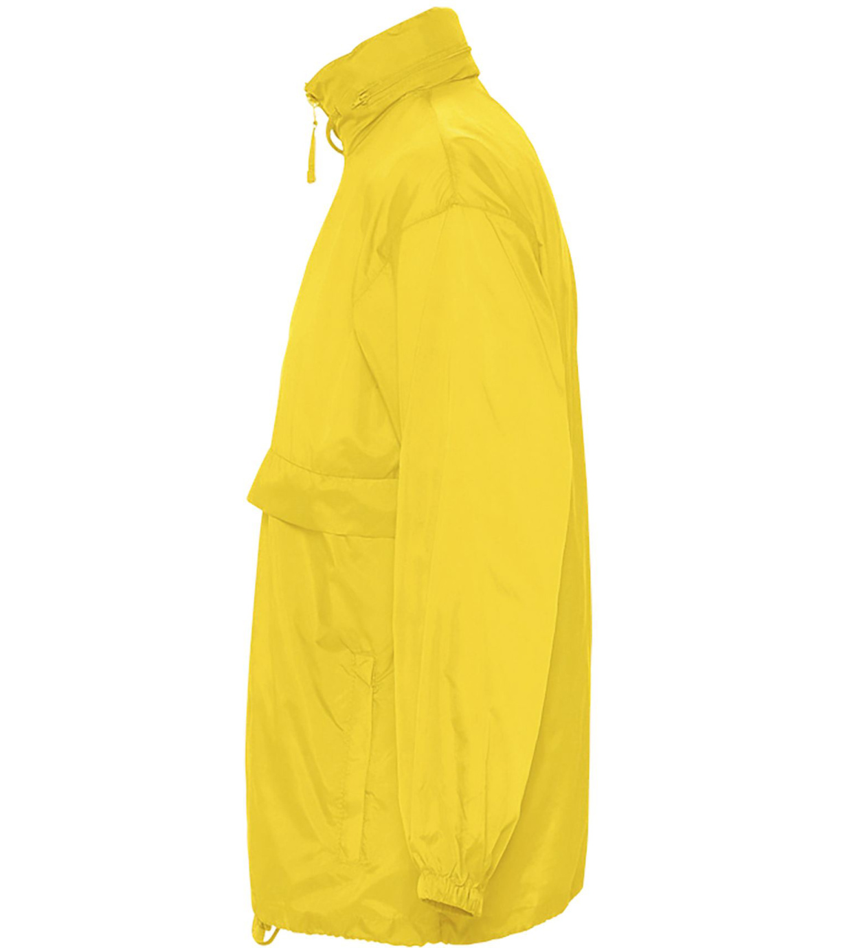 Zapinana na zamek wiatrówka z kapturem, który można schować w kołnierzu. Kołnierzyk ma ściągacz. System składania „In bag” z elastycznymi sznurkami w talii, ułatwiającymi dopasowanie do mniejszego rozmiaru. Elastyczne mankiety i oczka wentylacyjne to oczywistość. Dwie kieszenie zapinane na zamek. Materiał wodoodporny.