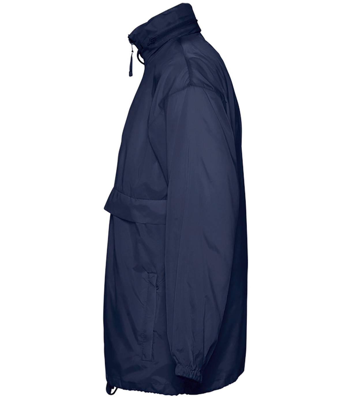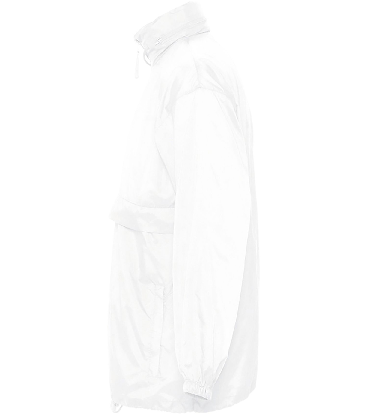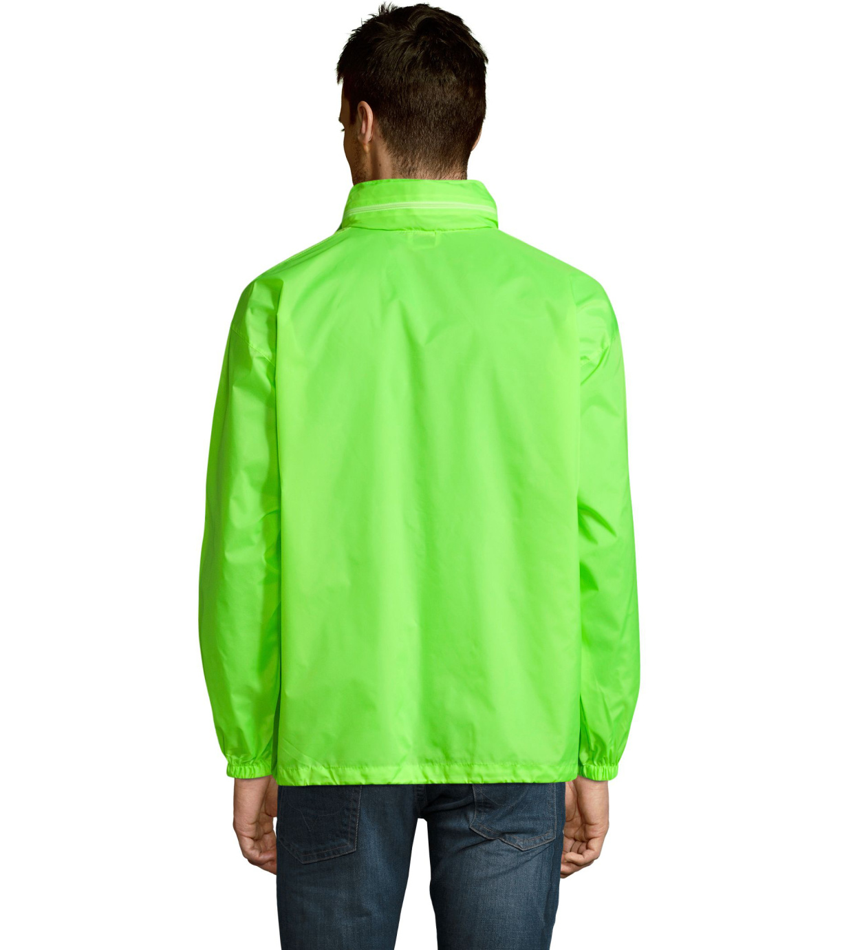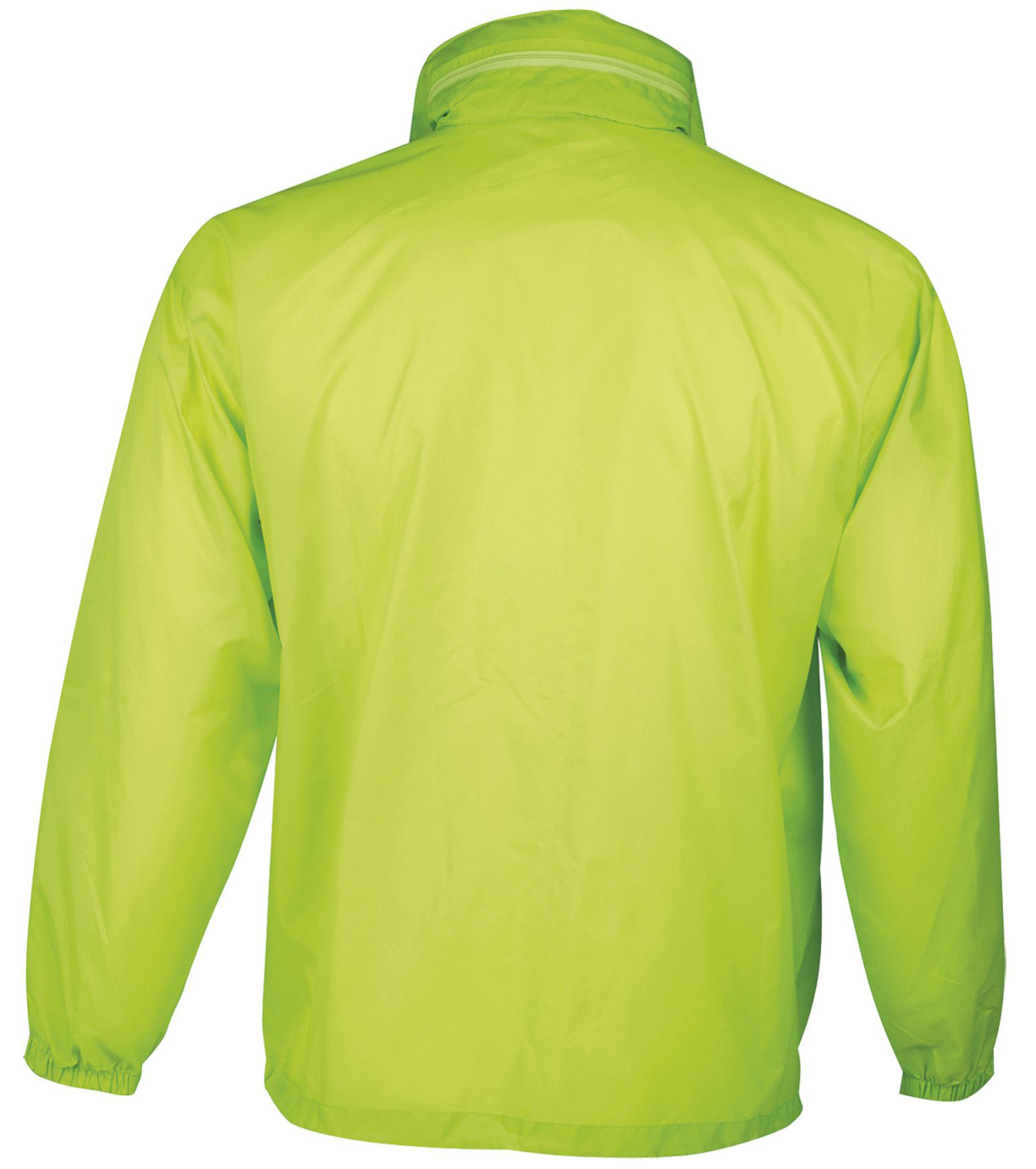 Zapinana na zamek wiatrówka z kapturem, który można schować w kołnierzu. Kołnierzyk ma ściągacz. System składania „In bag” z elastycznymi sznurkami w talii, ułatwiającymi dopasowanie do mniejszego rozmiaru. Elastyczne mankiety i oczka wentylacyjne to oczywistość. Dwie kieszenie zapinane na zamek. Materiał wodoodporny.