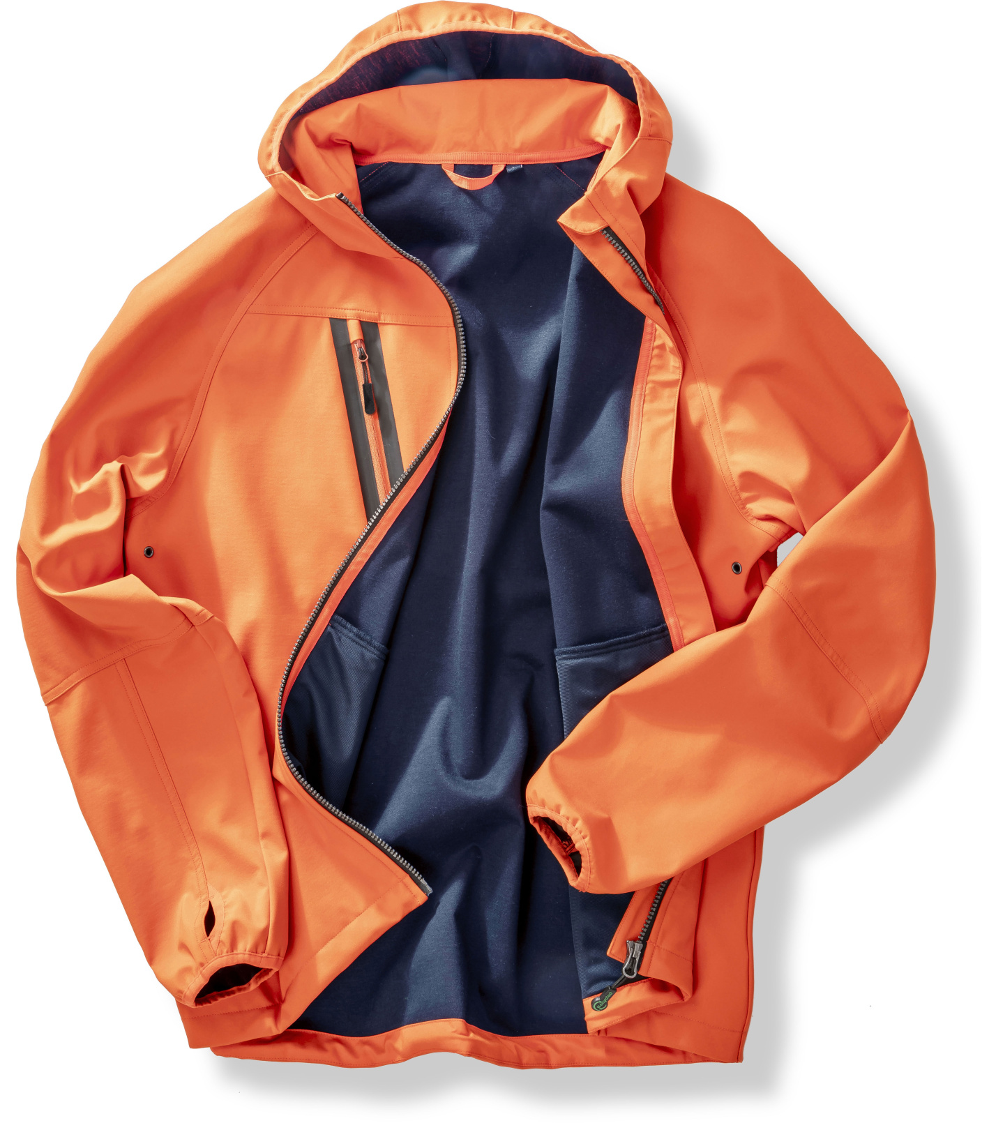 Tkanina: 300 g/m2 3-warstwowa kurtka zawierająca: warstwę zewnętrzną: 100% poliester z recyklingu; warstwę środkową: wodoodporna (8000 mm), oddychająca (1000 g) i wiatroodporna membrana TPU, warstwę wewnętrzną: 100% dzianina poliestrowa z recyklingu