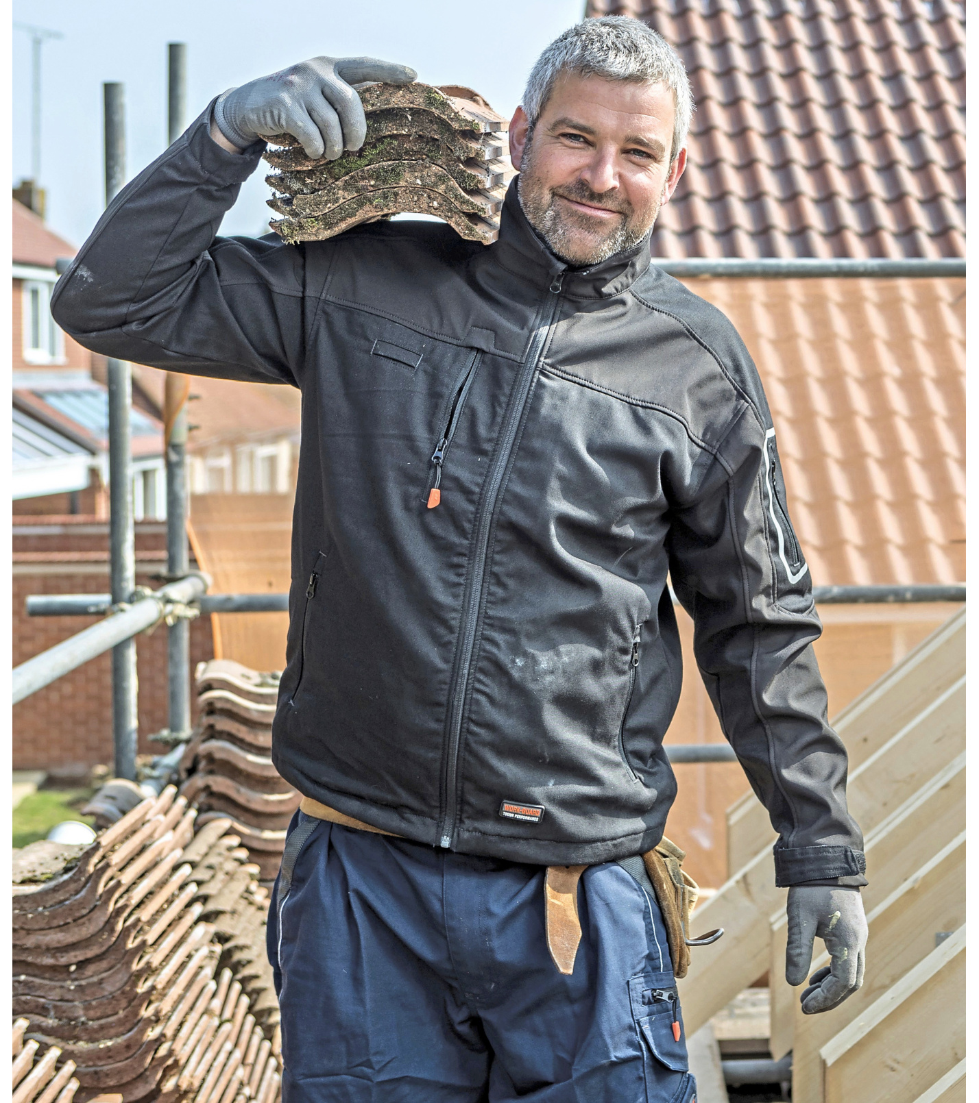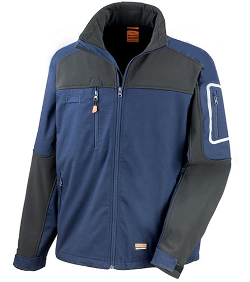 Korpus: 63% poliester, 34% bawełna, 3% elastanGóra i rękawy w kontrastowym kolorze: 320 g/m?, kurtka z 3-warstwowej, połączonej tkaniny softshell; składa się z warstwy zewnętrznej: 94% poliester / 6% elastan, warstwy środkowej: membrana TPU, warstwy wewnętrznej: polar poliestrowy