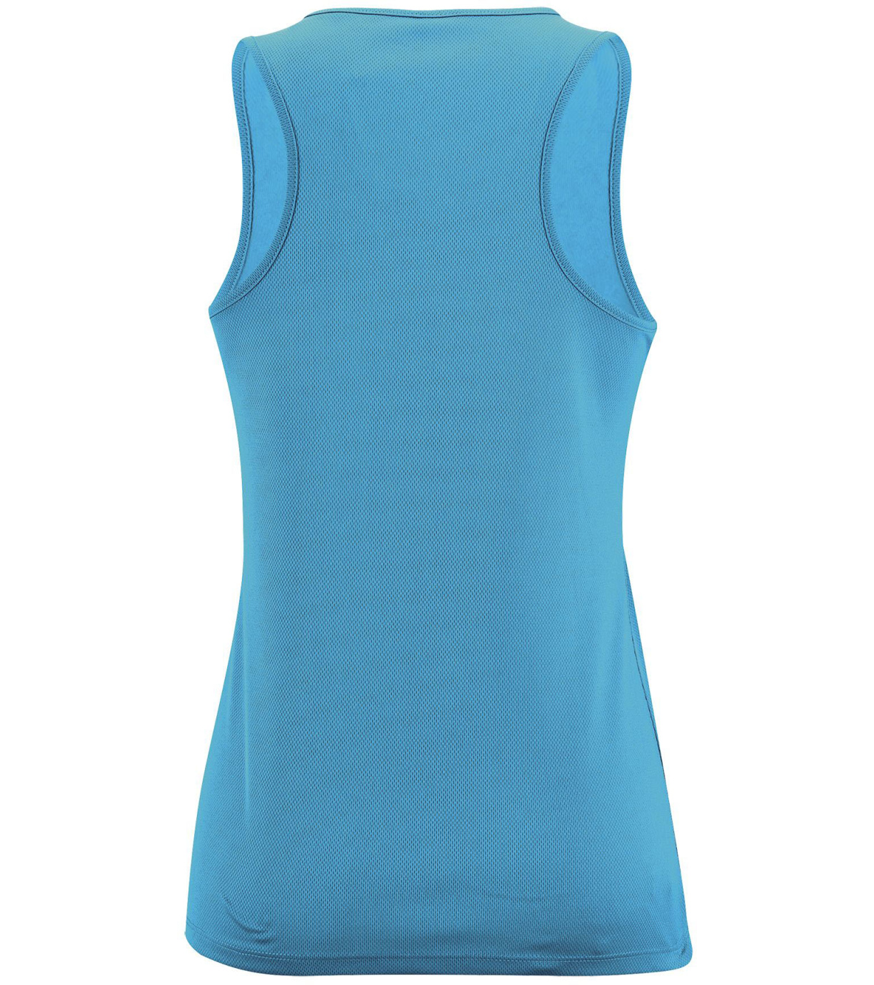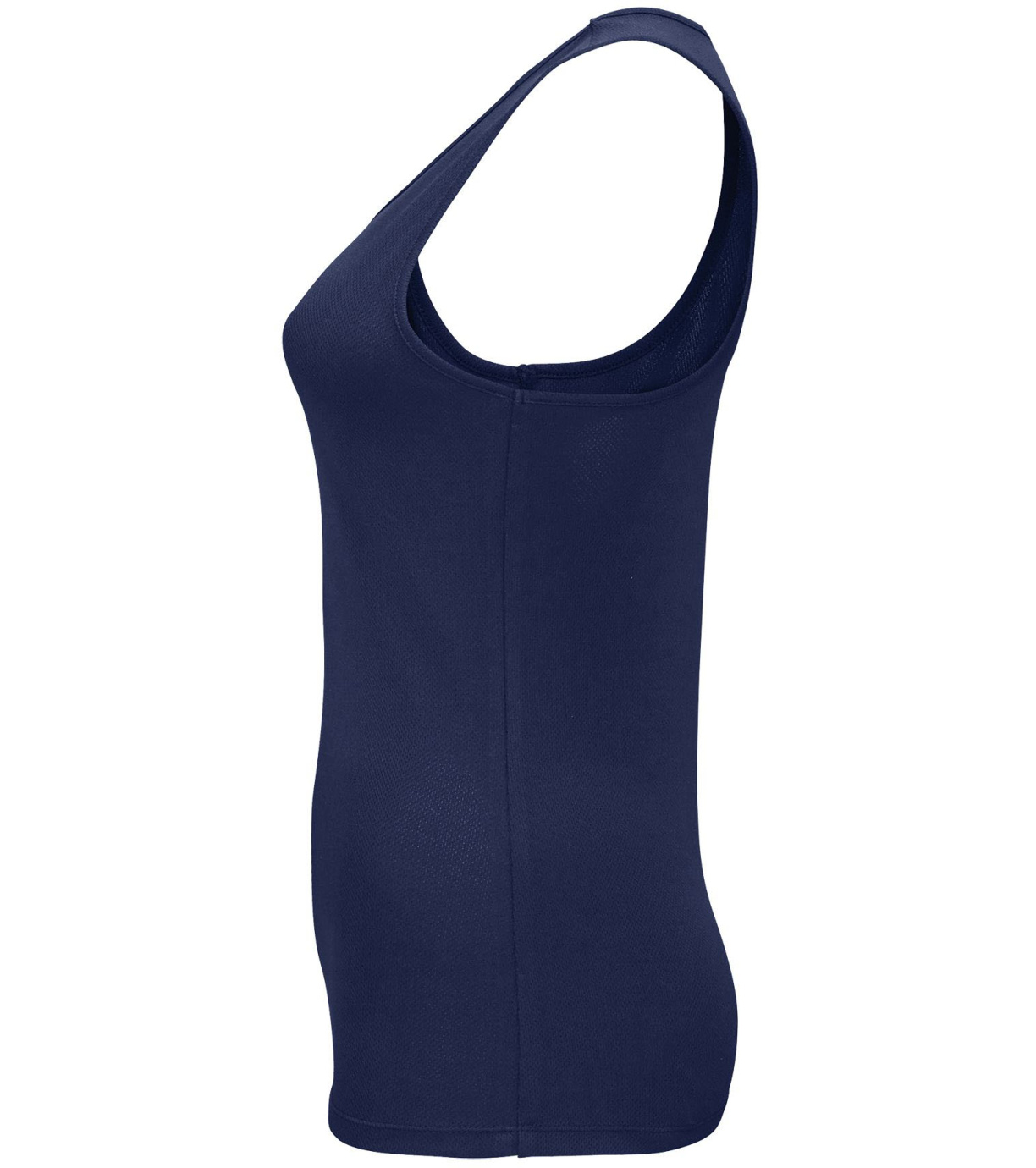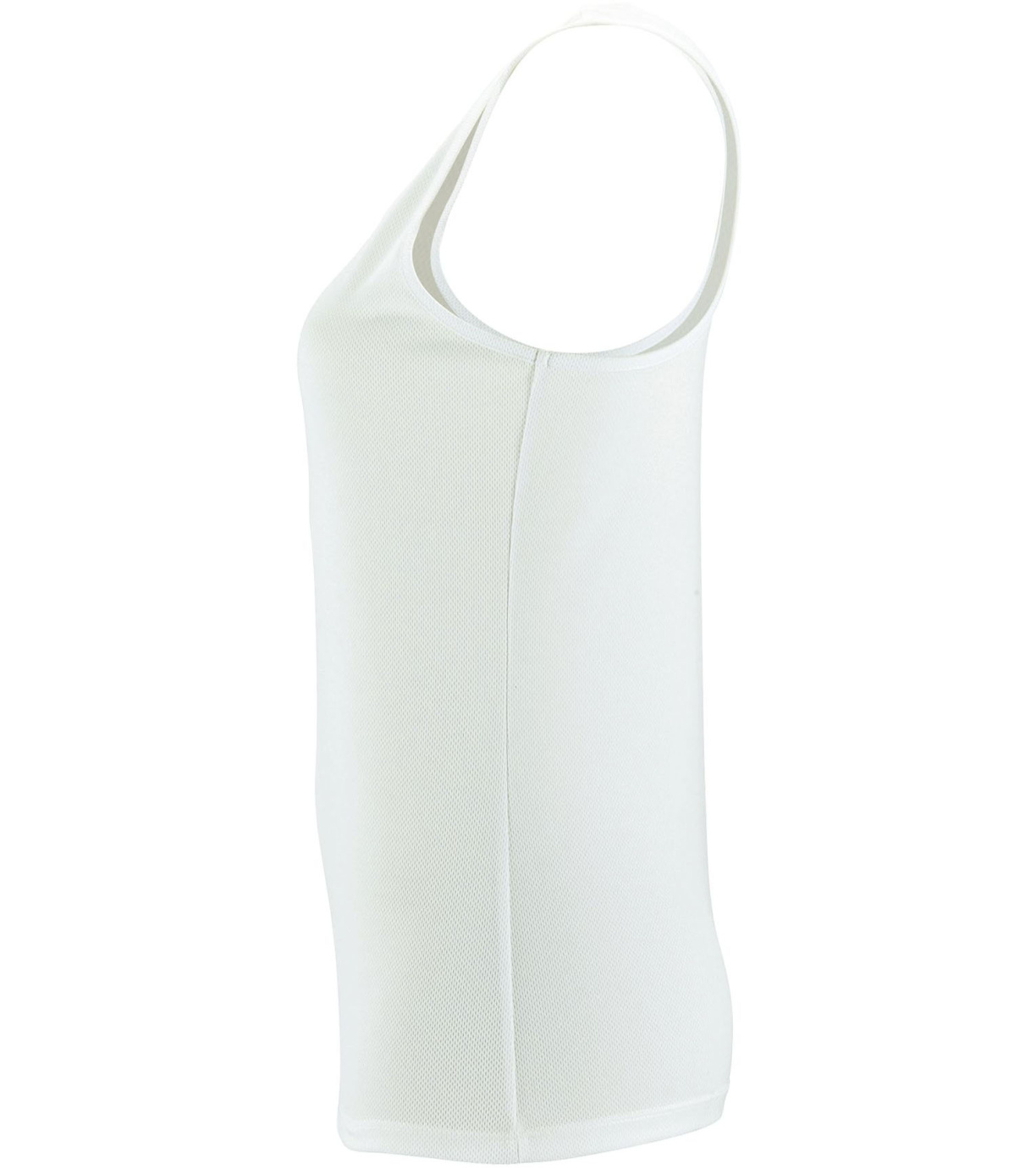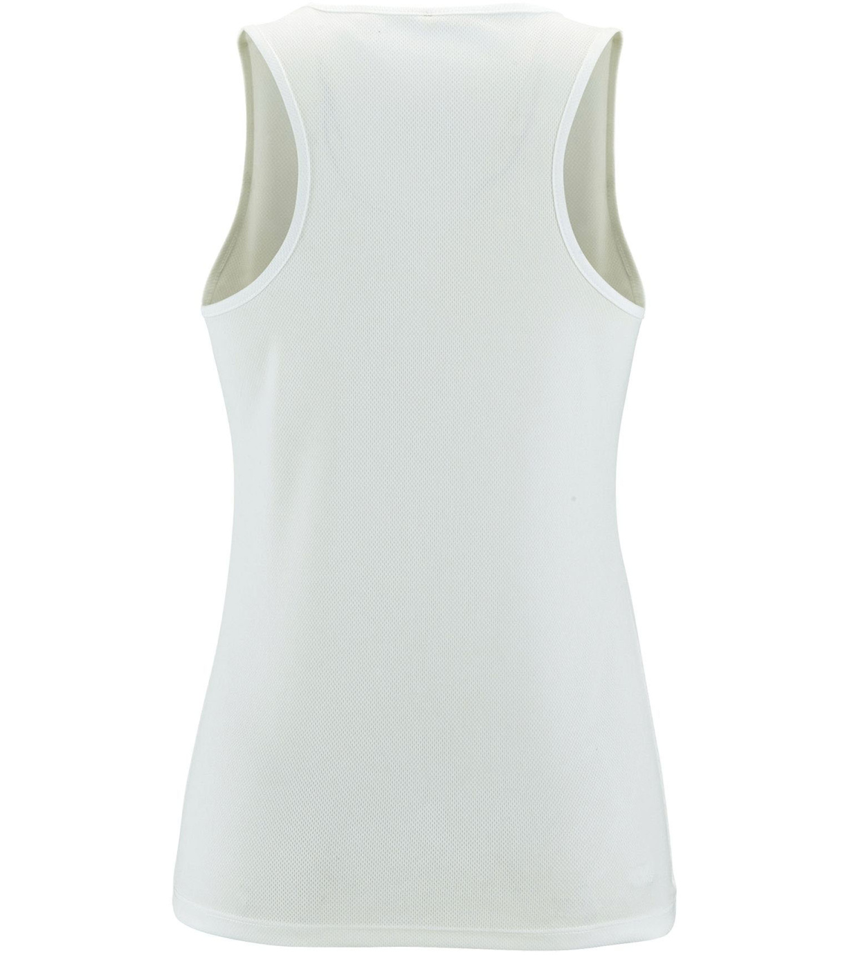 Damski podkoszulek wykonany z szybkoschnącego materiału, ma delikatne wykończenia wokół szyi i pod pachami, dopasowany krój ze szwami bocznymi.