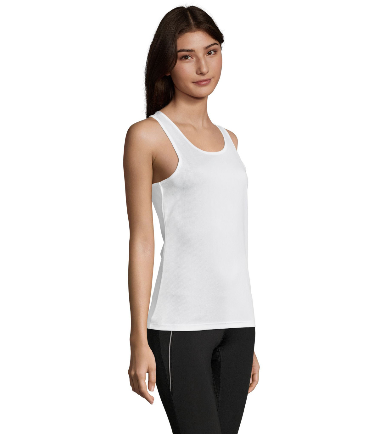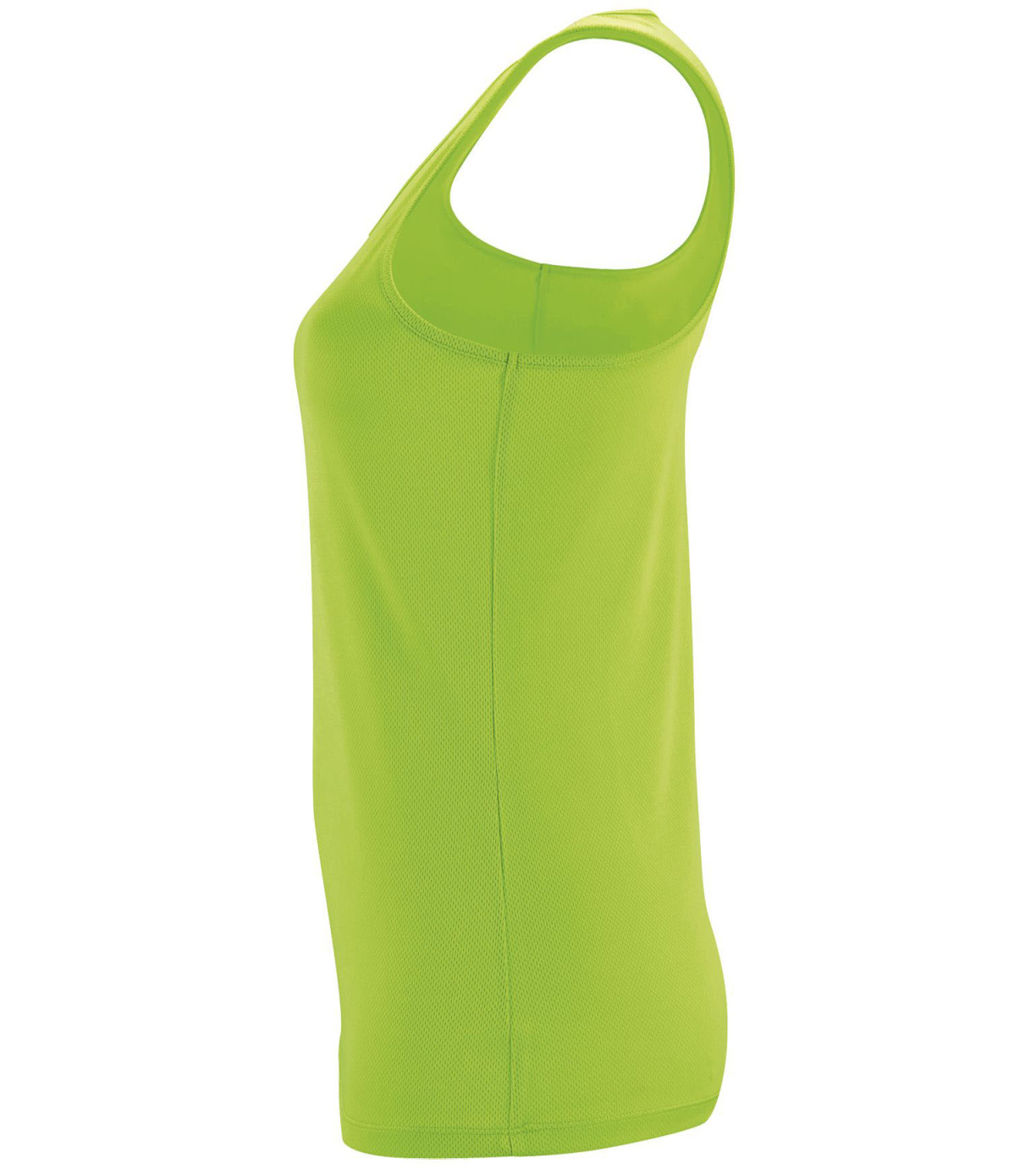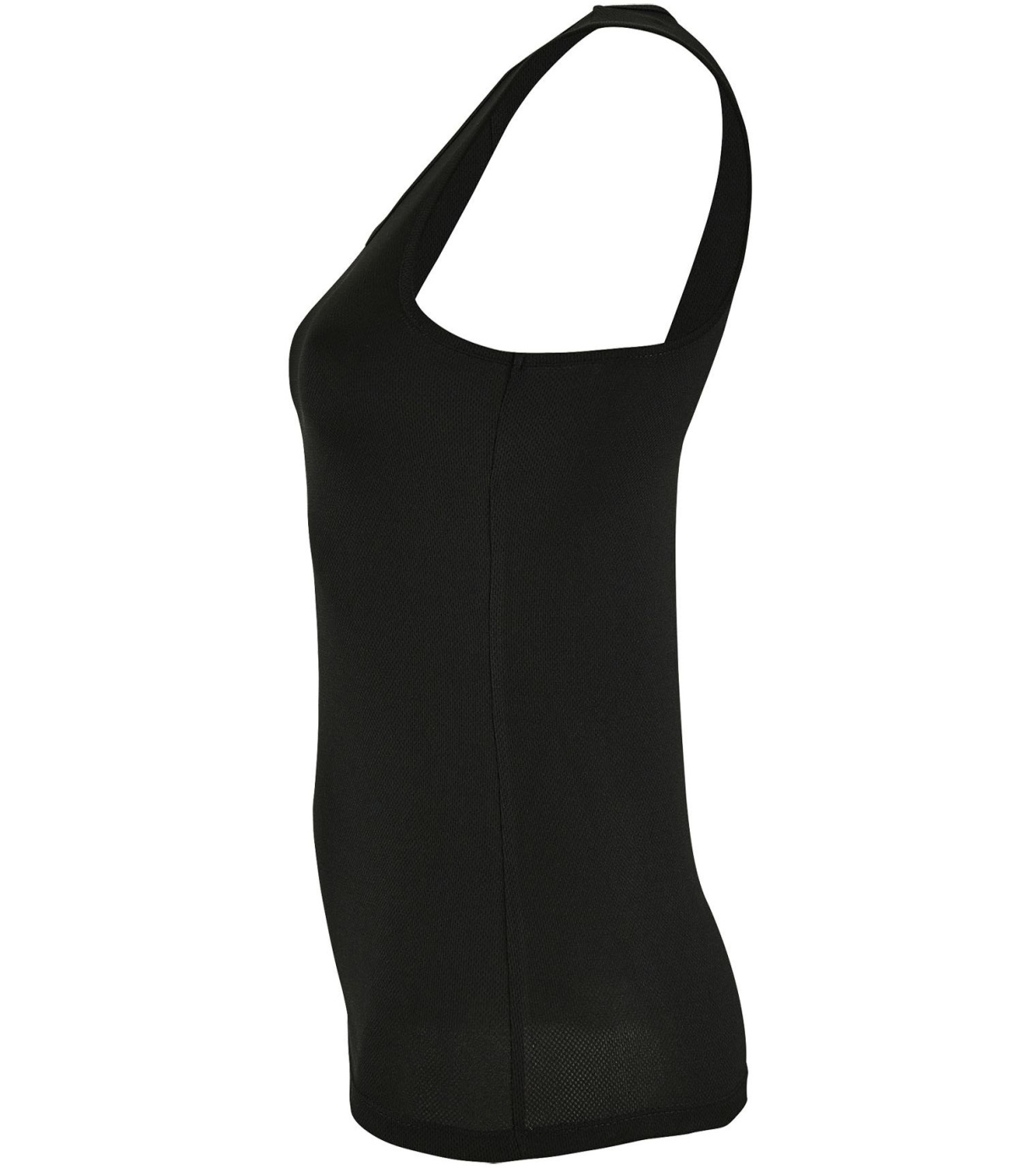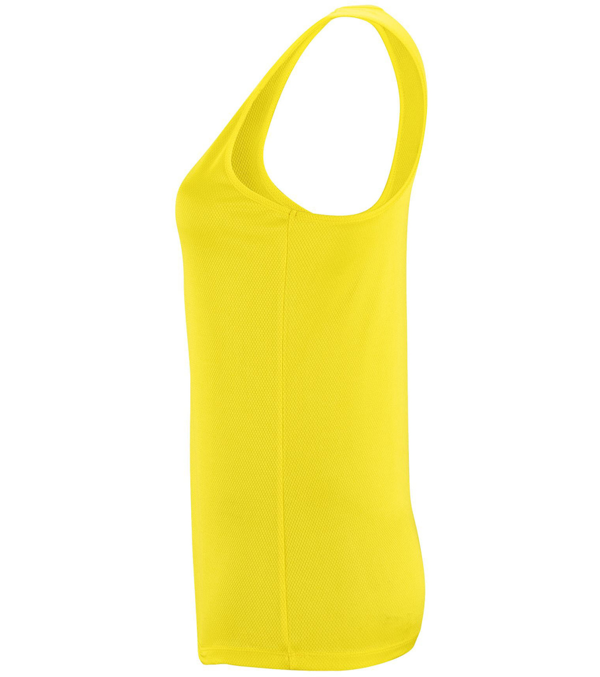 Damski podkoszulek wykonany z szybkoschnącego materiału, ma delikatne wykończenia wokół szyi i pod pachami, dopasowany krój ze szwami bocznymi.