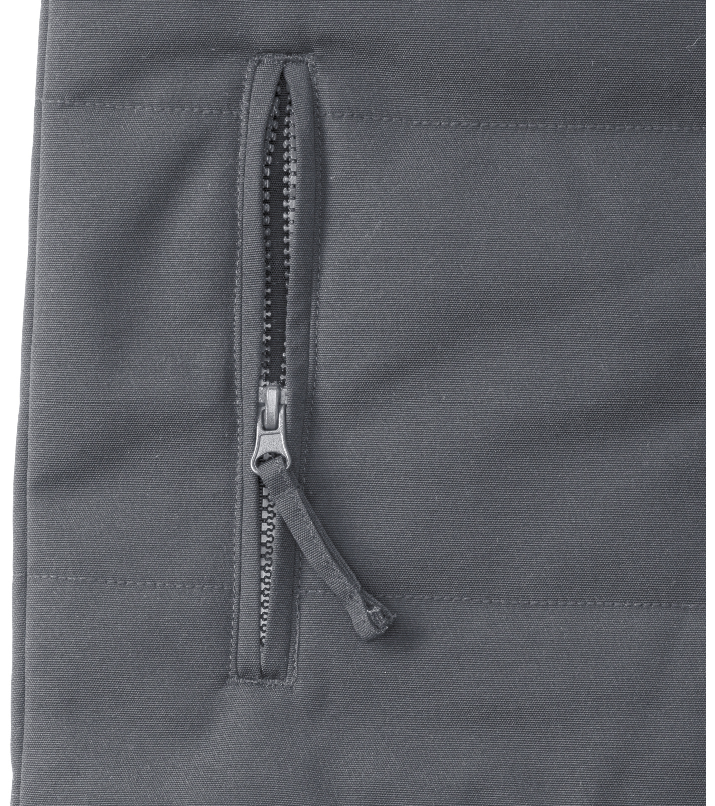 Kieszenie przednie z krytym pionowym zamkiem i podszewką z tego samego materiału